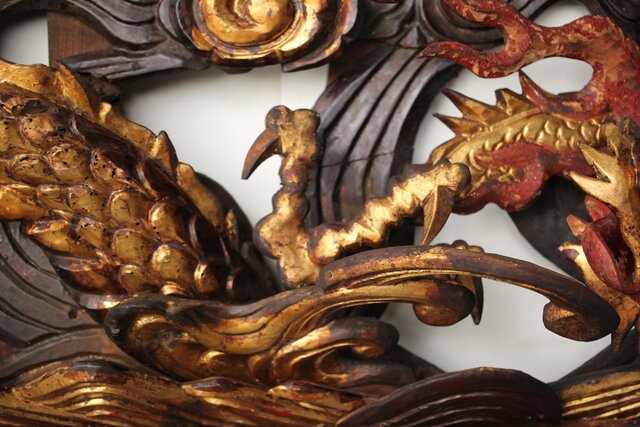 寺院彫刻金彩木彫欄間 龍 R0372 表