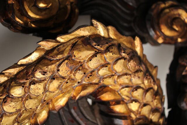 寺院彫刻金彩木彫欄間 龍 R0372 非常に立体的 配送は困難です