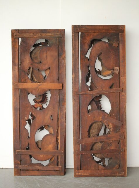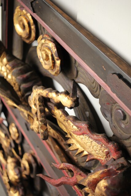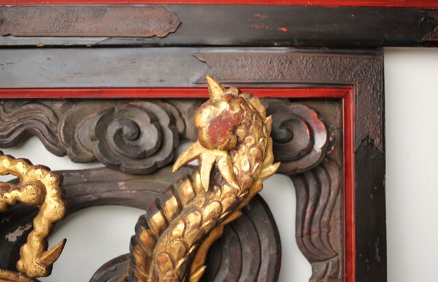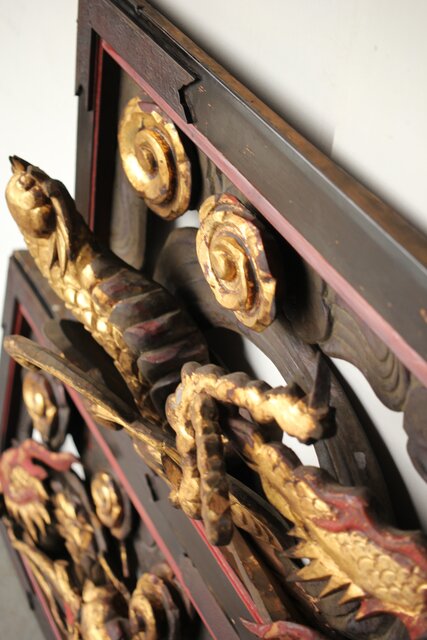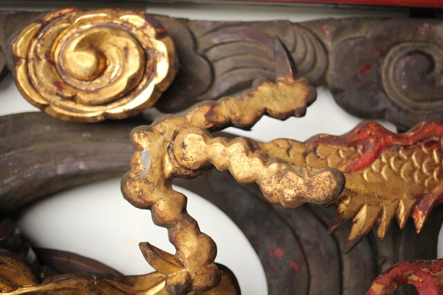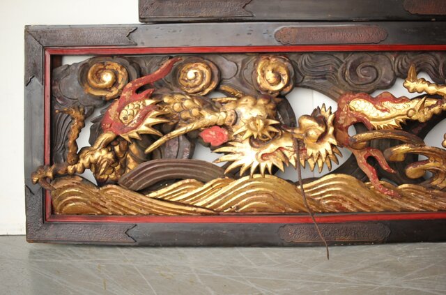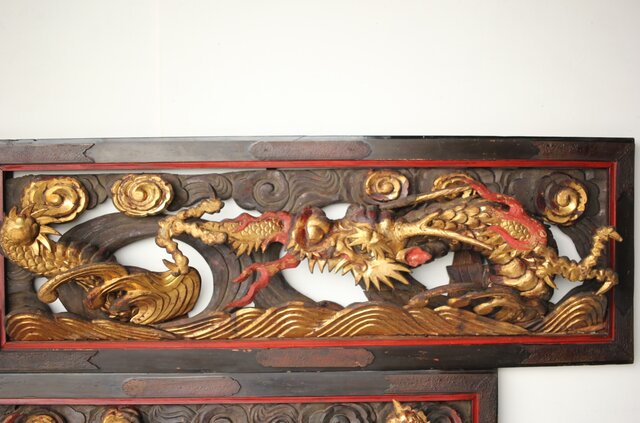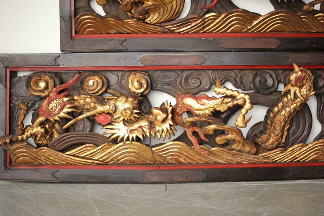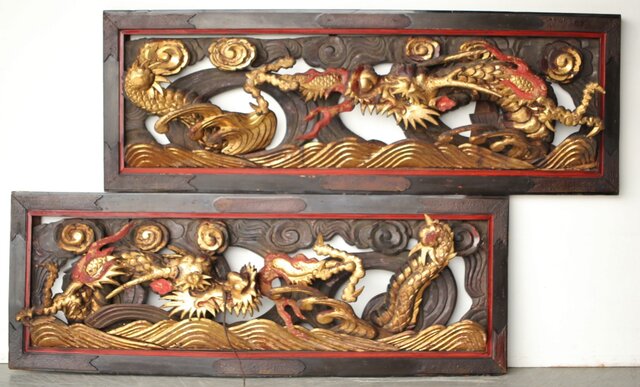 寺院彫刻金彩木彫欄間 龍 2枚1組 R0373