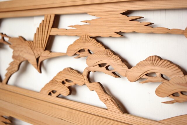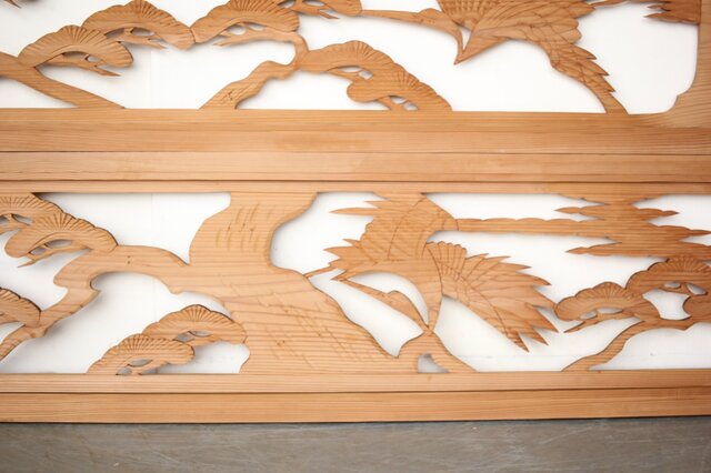 中型 鶴松木彫欄間 2枚1組 R0387 A面