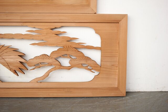 中型 鶴松木彫欄間 2枚1組 R0387 B面 同じデザインです