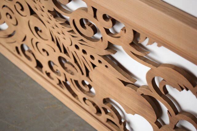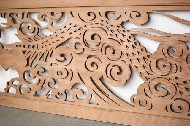 背面から照明などを当てても素敵な透かしの欄間です