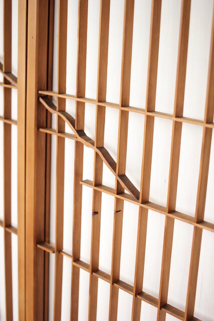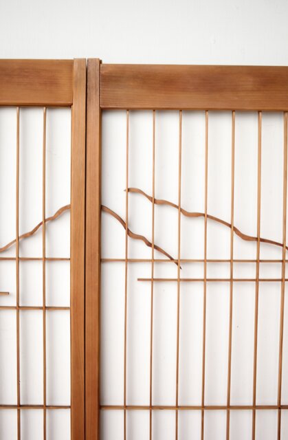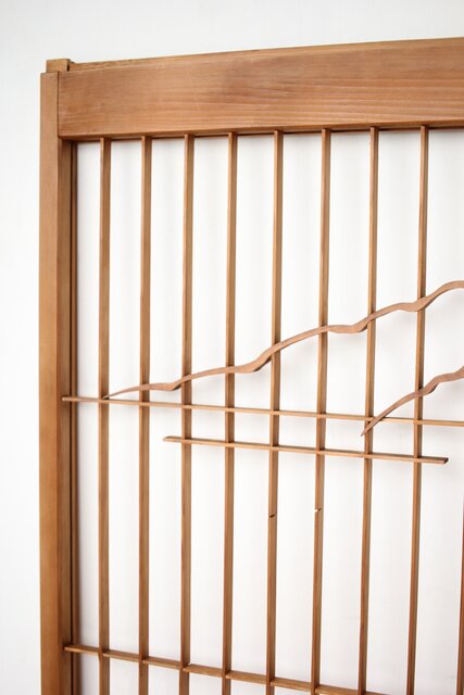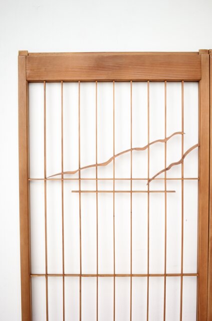 木彫彩色 漁村 書院 4枚1組 R0392 ガラスを入れる溝があります