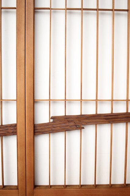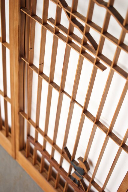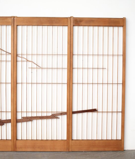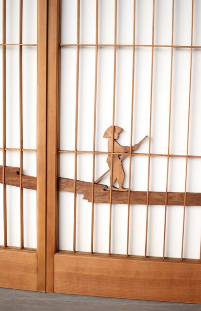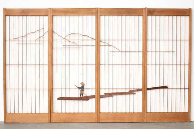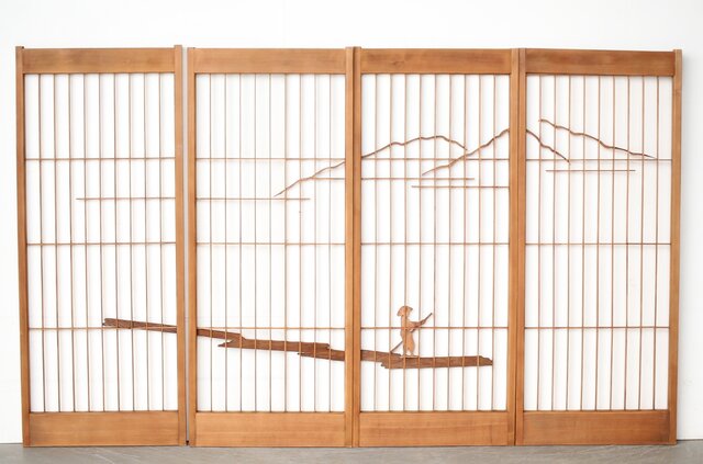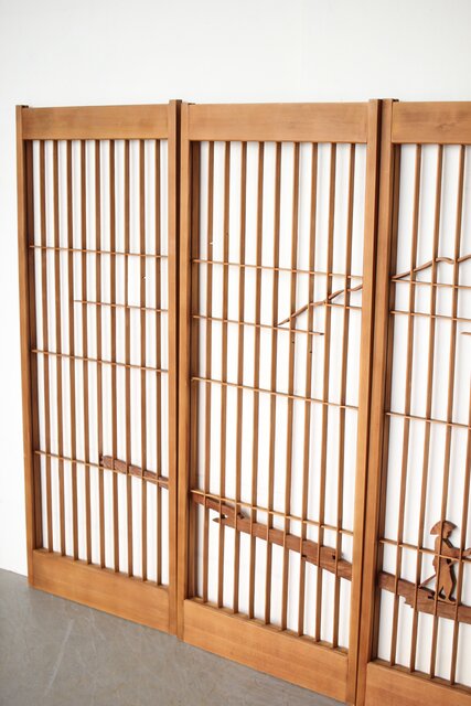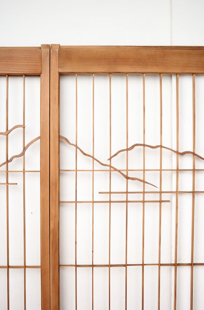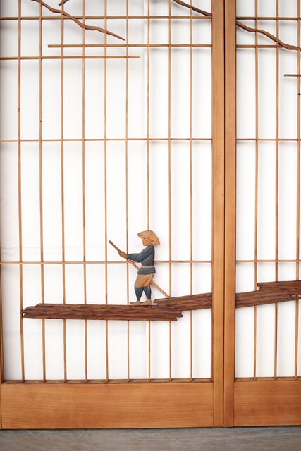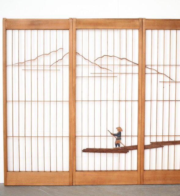 木彫彩色 漁村 書院 4枚1組 R0392 ウラ ガラス仕様ですが 現状は透かしです