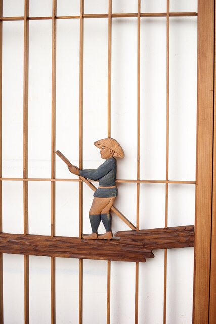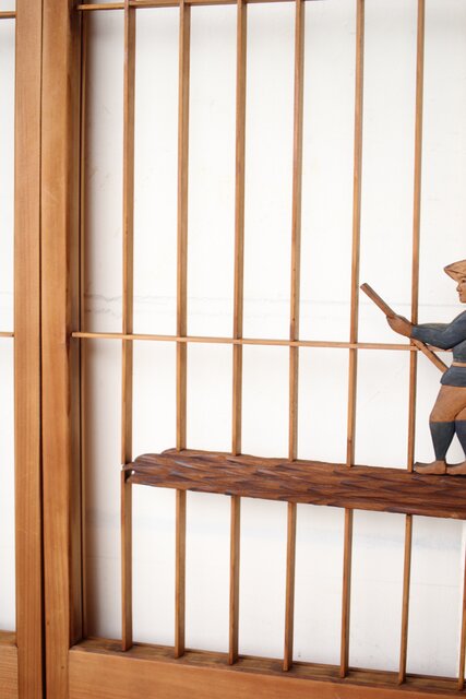 木彫彩色 漁村 書院 4枚1組 R0392 表