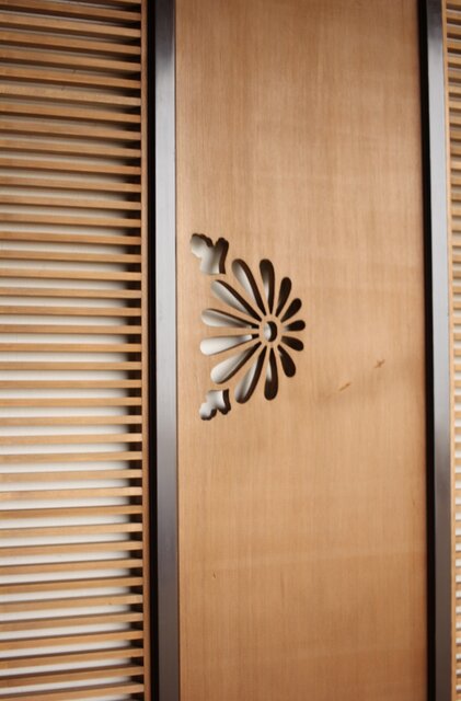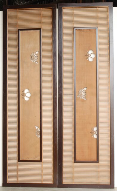 大型 黒枠透かしと筬の欄間 2枚1組 R0400