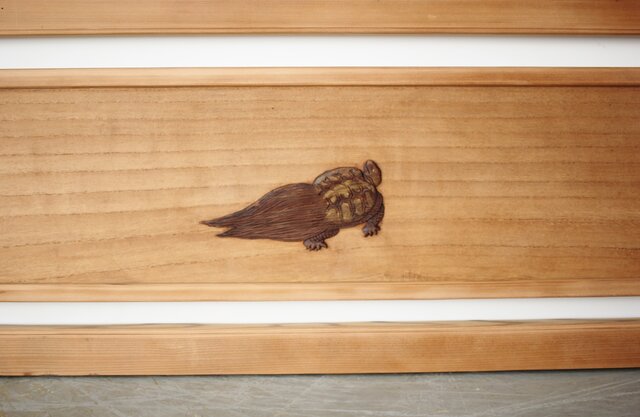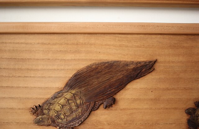 指物師の様子ですが玉声と螺鈿の短冊銘がはいっております