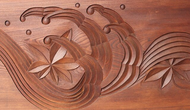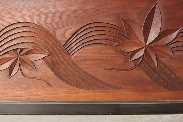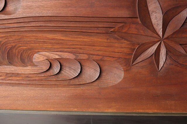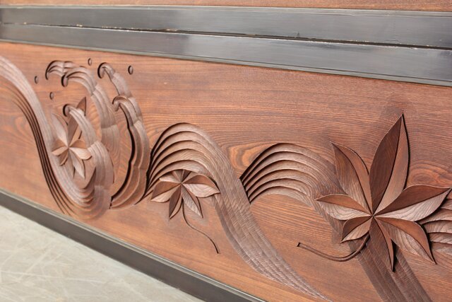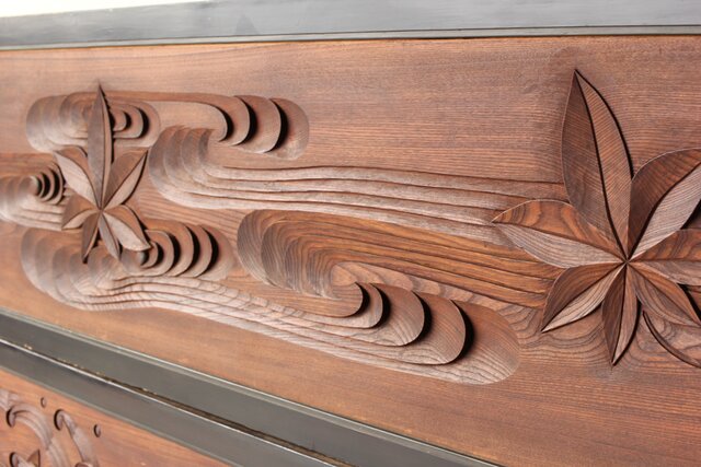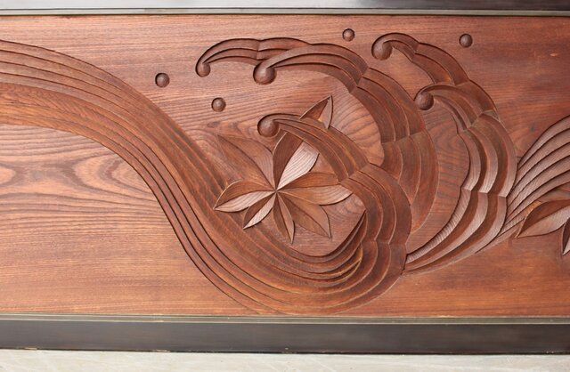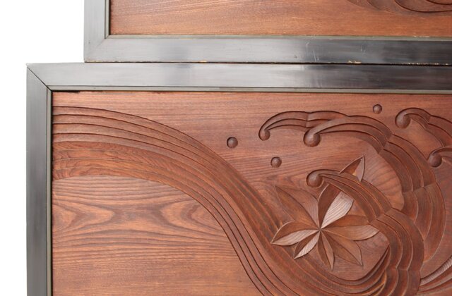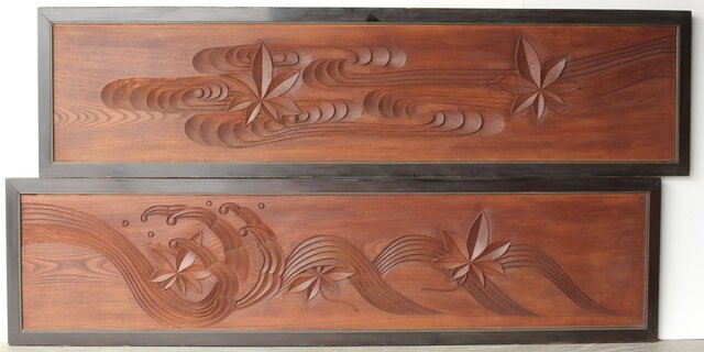 竜田川 欅一枚板木彫欄間 2枚1組 R0443Y