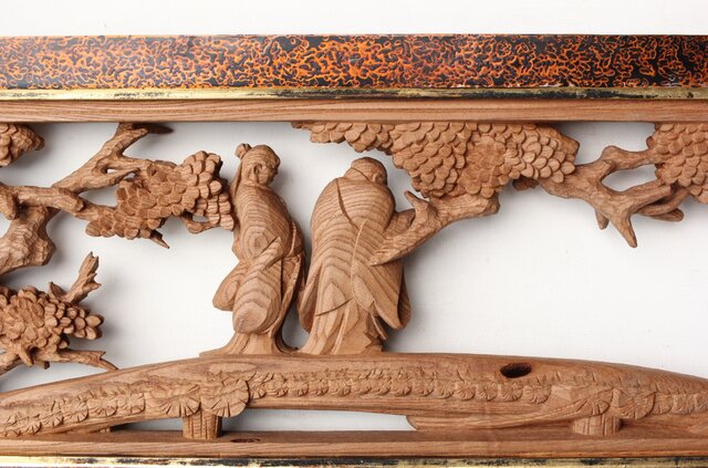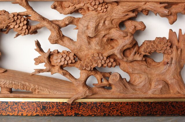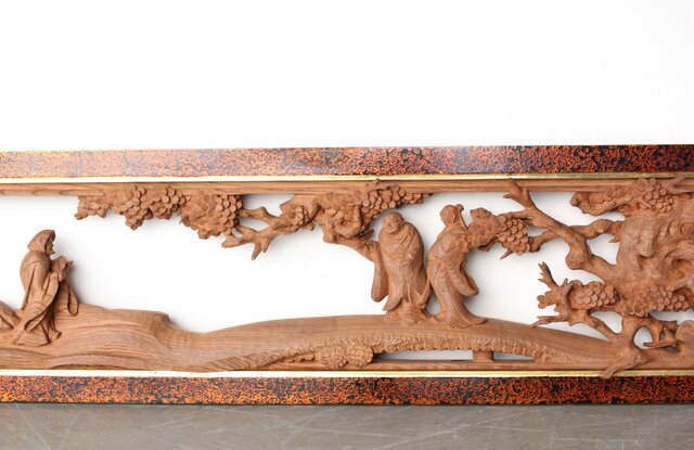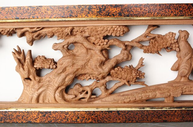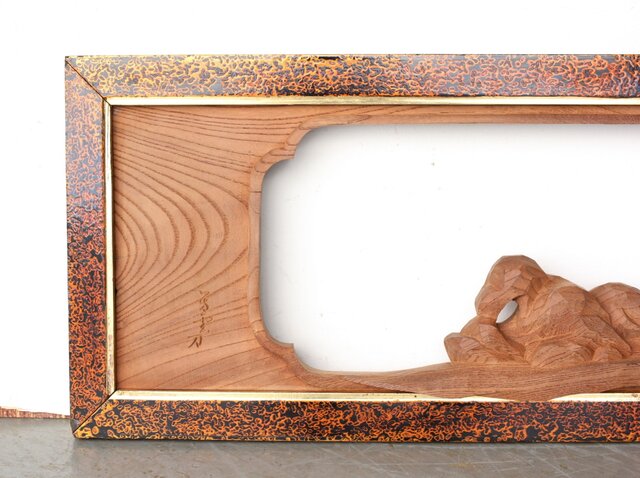 芳雲銘 会津塗枠 欅木彫欄間 R0456