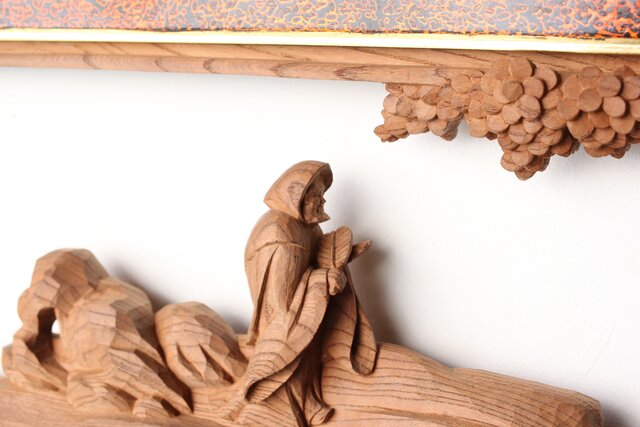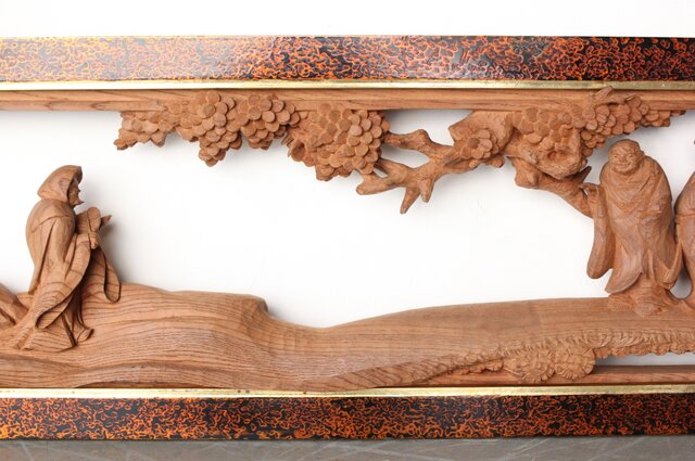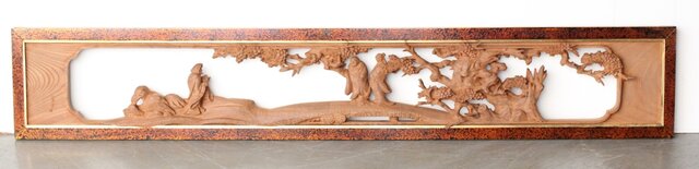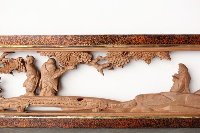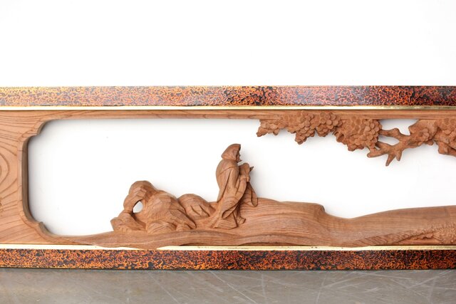 文人図のような印象ですが 欅地の彫でまた違った表情を見せます