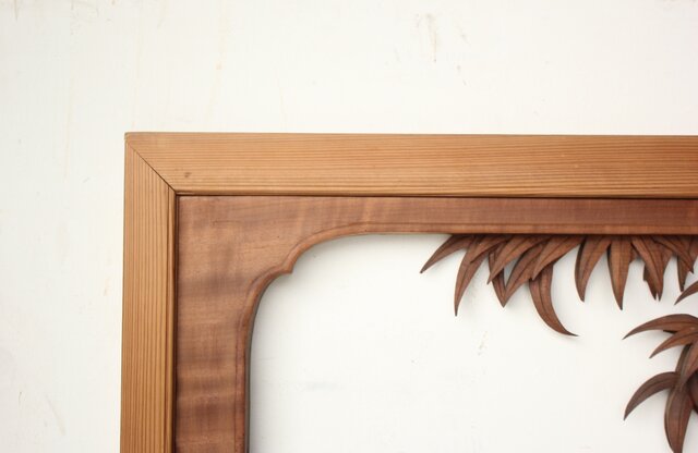 間を活かした美しい構図の木彫