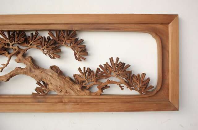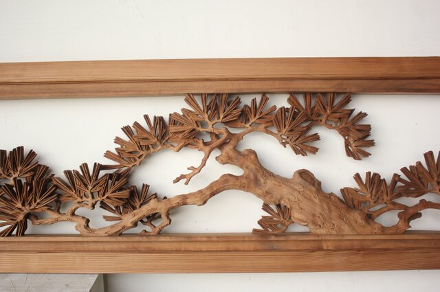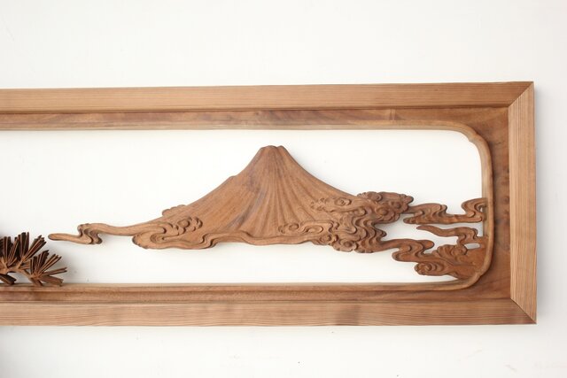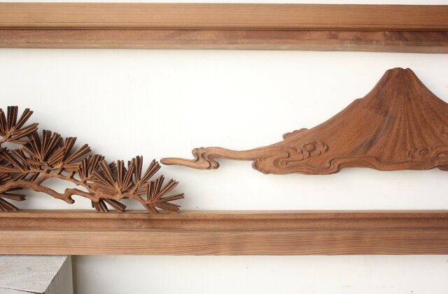 大島五雲 井波彫刻 木彫欄間 【富士に松】 R0508 敢えて接続しない 職人技