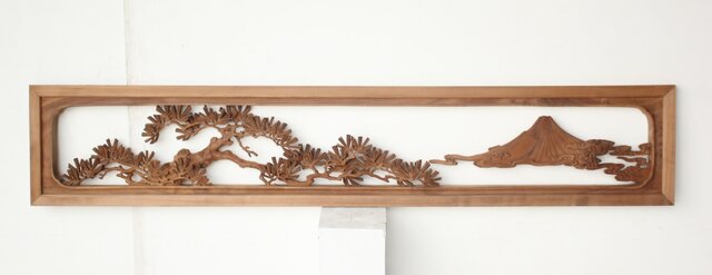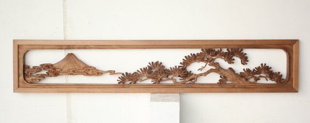 大島五雲 井波彫刻 木彫欄間 【富士に松】 R0508 表