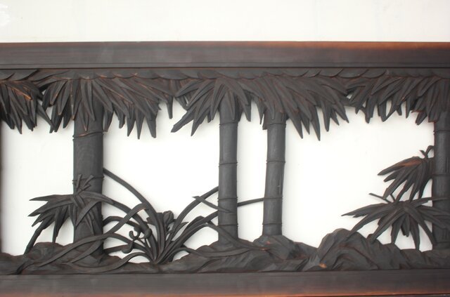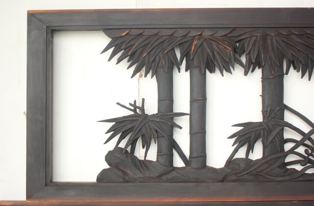 煤けた松竹梅木彫欄間 2枚1組 R0510