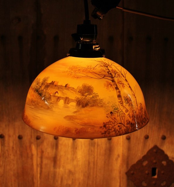 日陶オールドノリタケ洋画電笠/照明 A1618