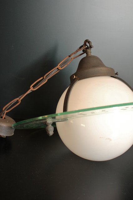 土星型切子電笠/シャンデリア A1732 ※天井に固定する金具とそのカバーがついています