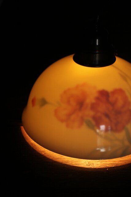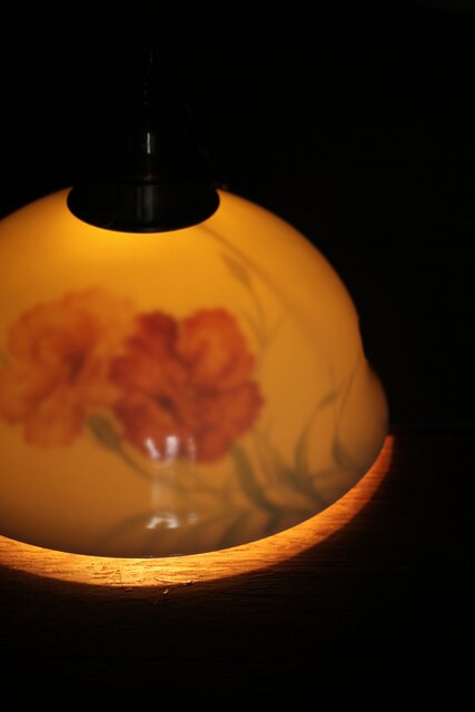 内側の絵付けにもかかわらず 灯を付けると外側から透けるタイプです