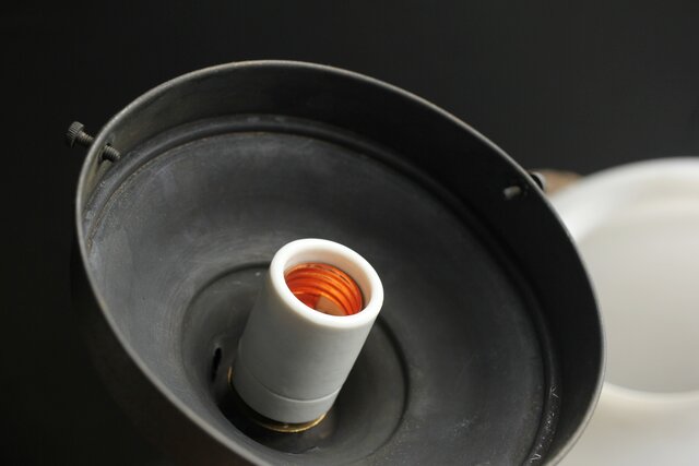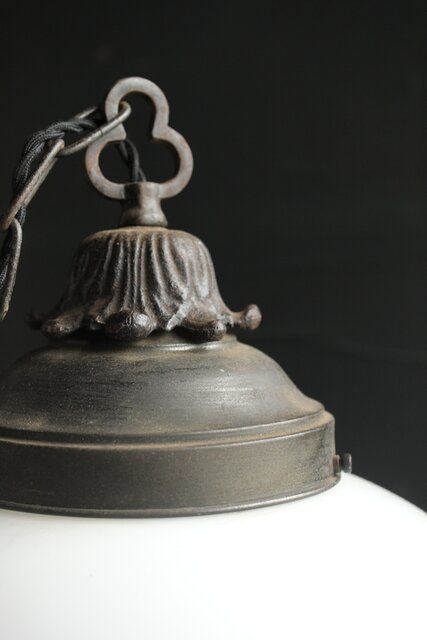 吊り金具も凝っていて大きなシェードの存在感に負けず
