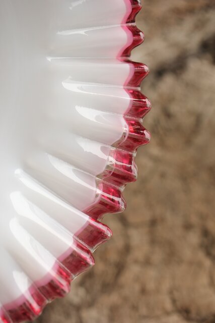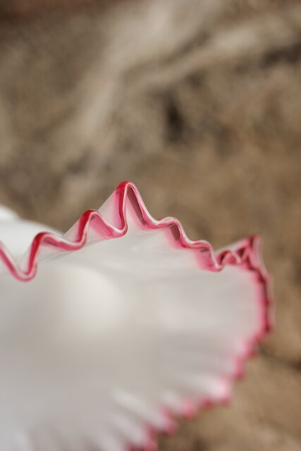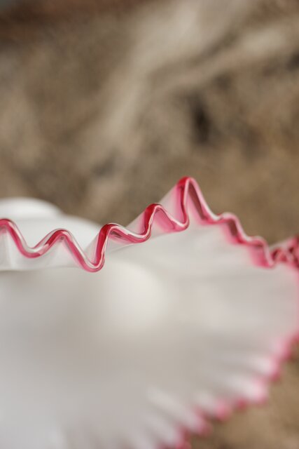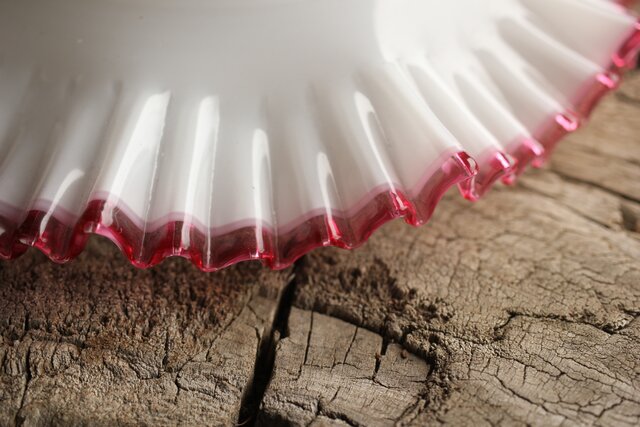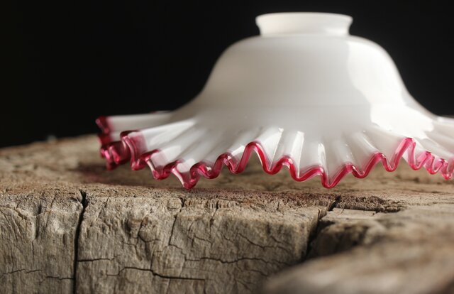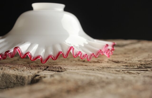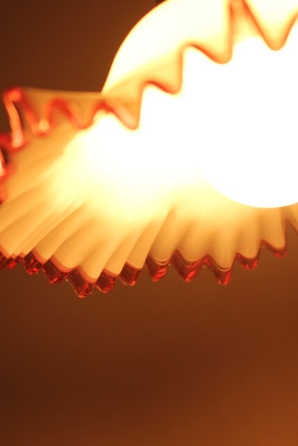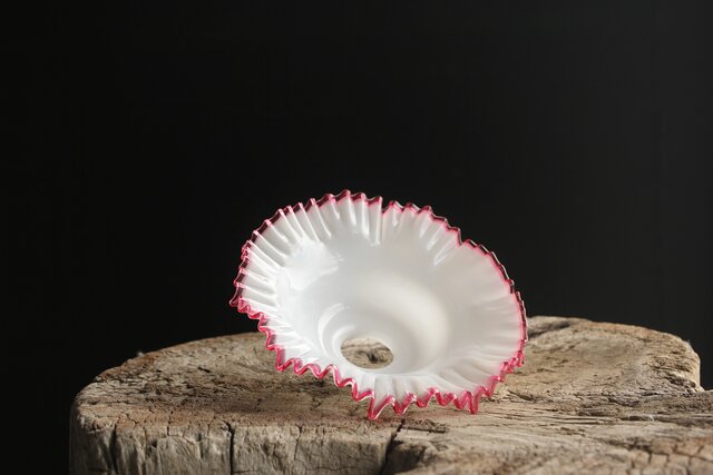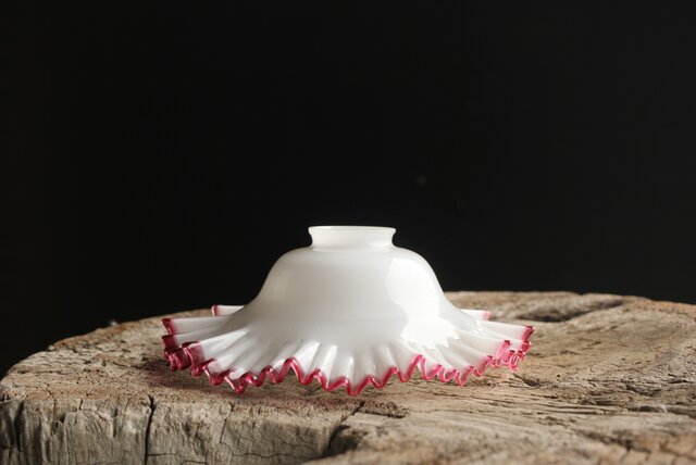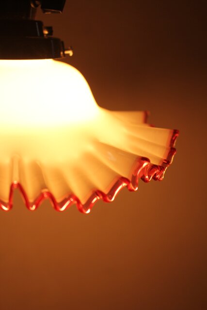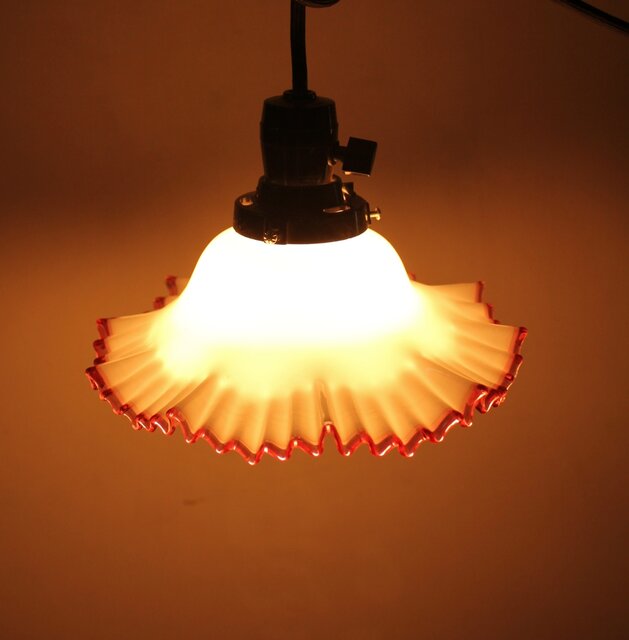 乳白地赤縁 ひらひら電笠 A036