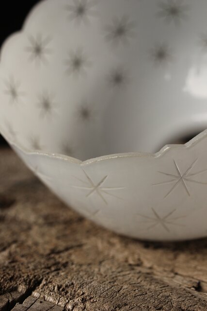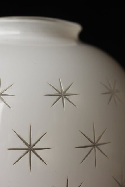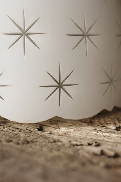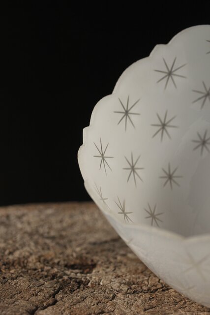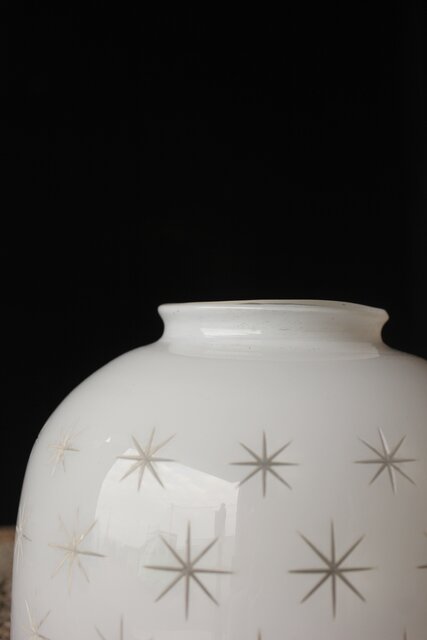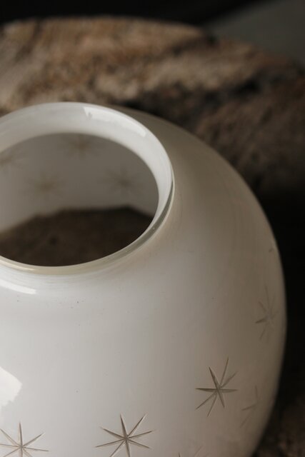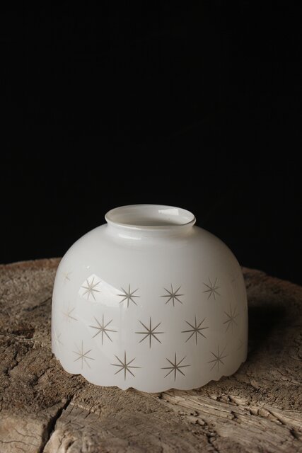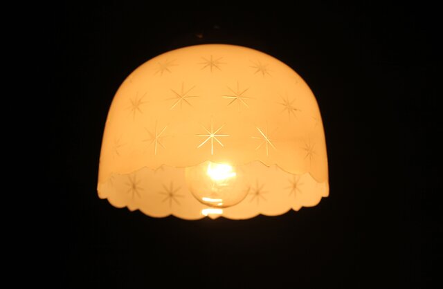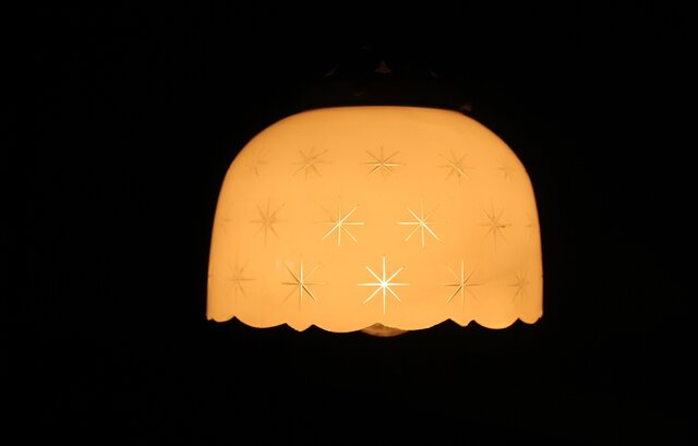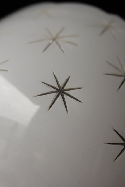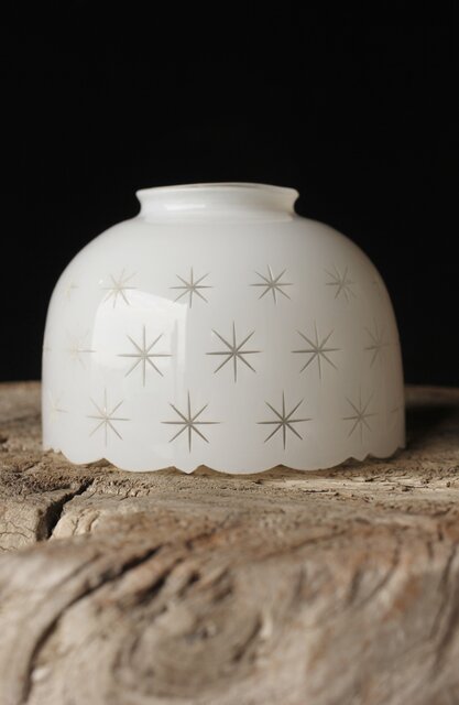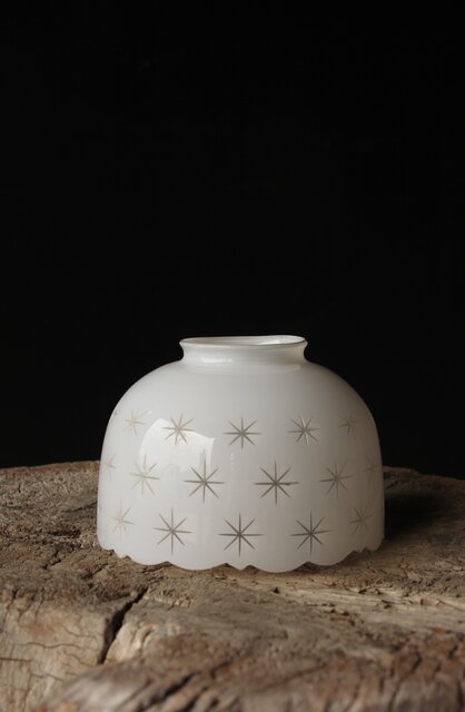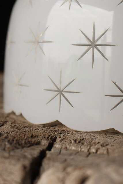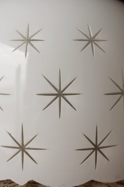 古手 星柄 乳白色ガラス被切子電笠 A056