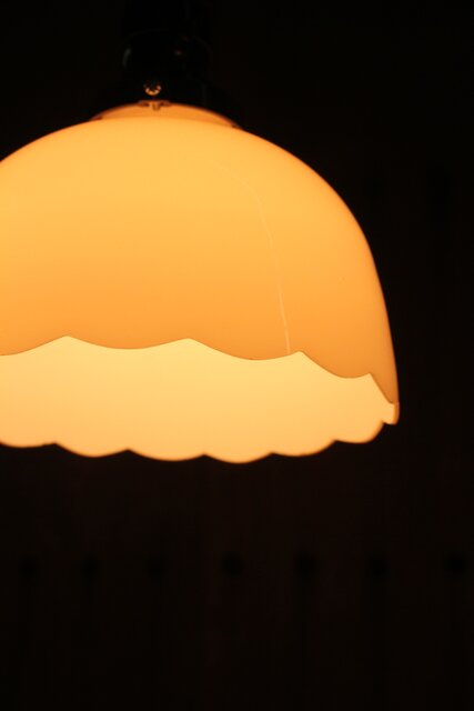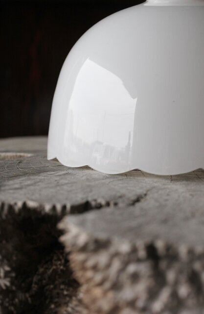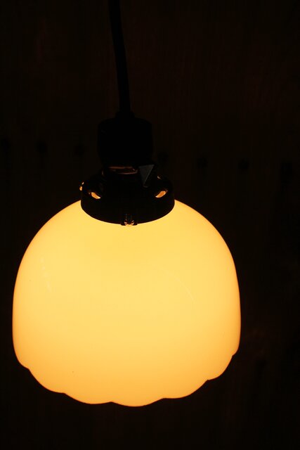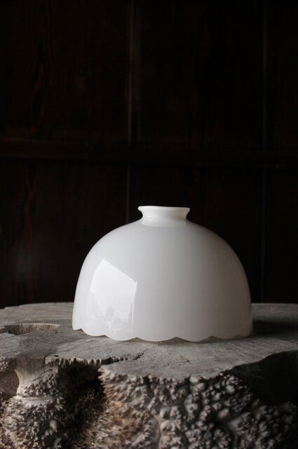 輪花縁 乳白色ガラス電笠照明 A067
