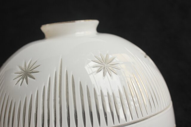 透明ガラスに白硝子を被せ 外カットを施した時代電笠