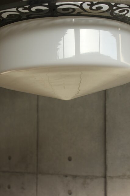 ガラスシェードにくぼみがあり