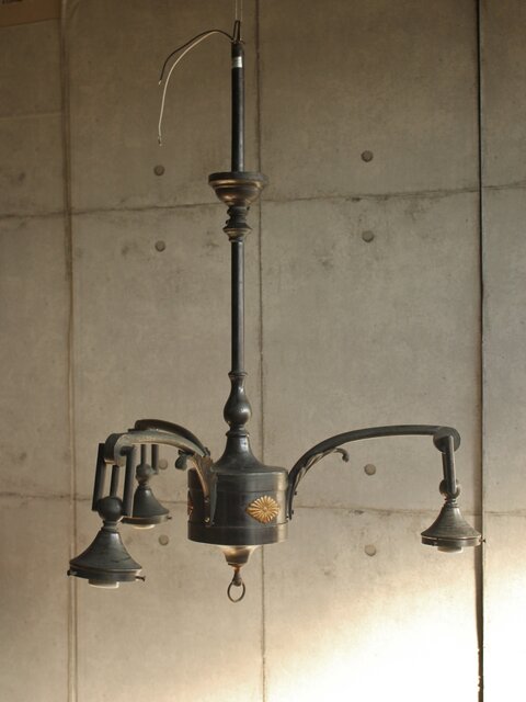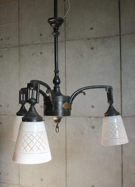 古手稀少 切子3灯シャンデリア照明 A545