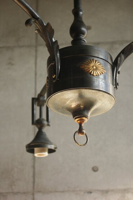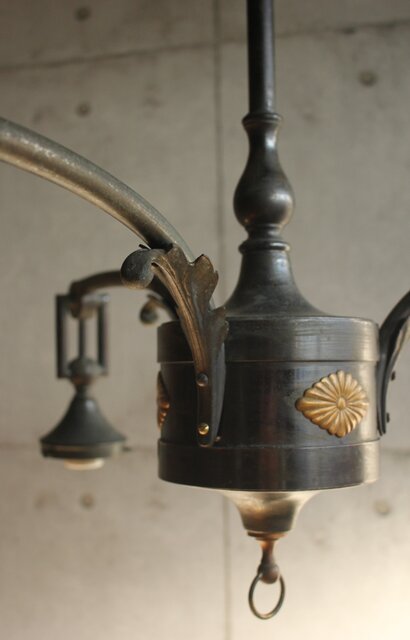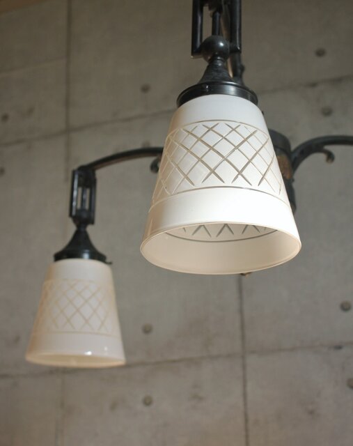 大変稀少な古手の切子ガラスシェードが使用された