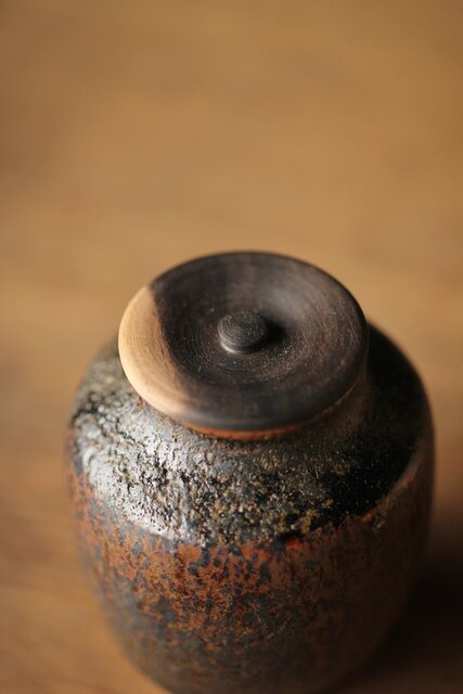 上品な仕覆 蓋は黒柿製