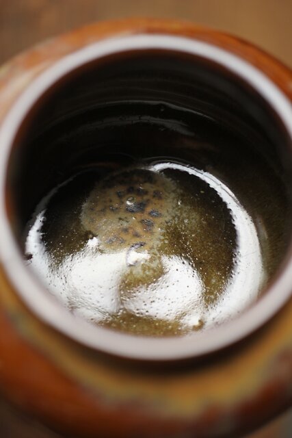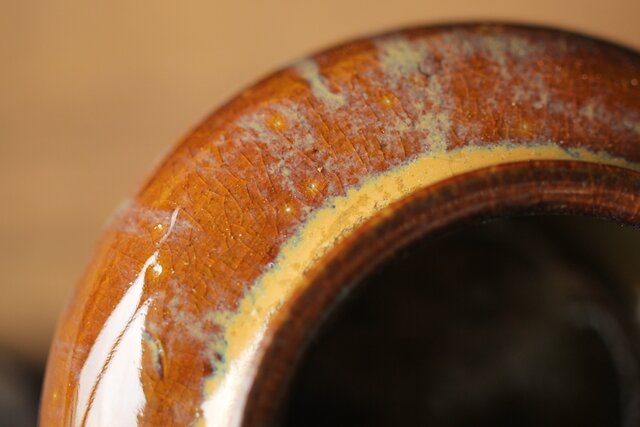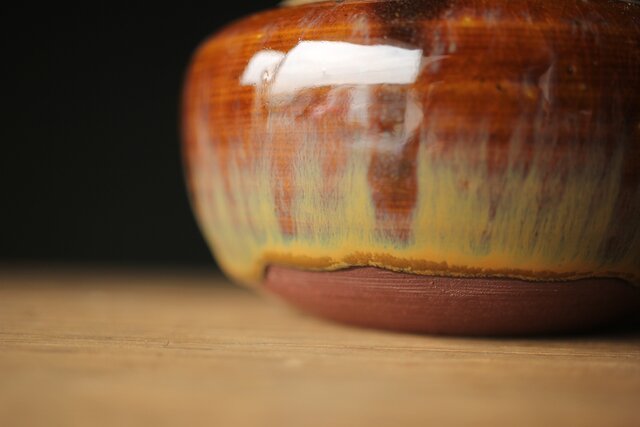 釉薬の美しい13代による高取焼の茶入です