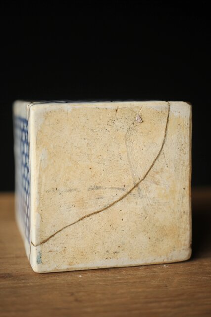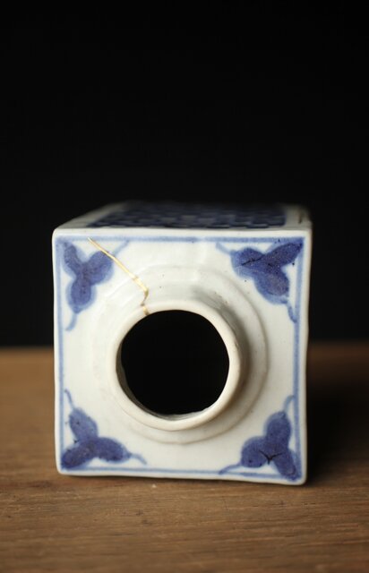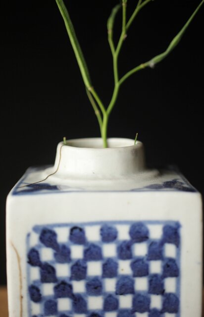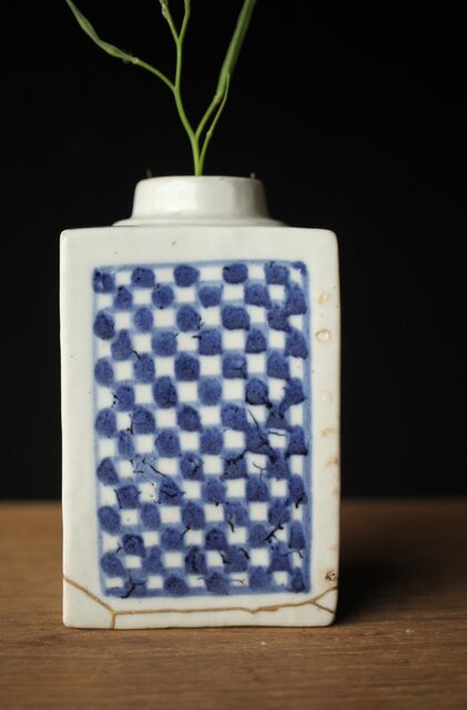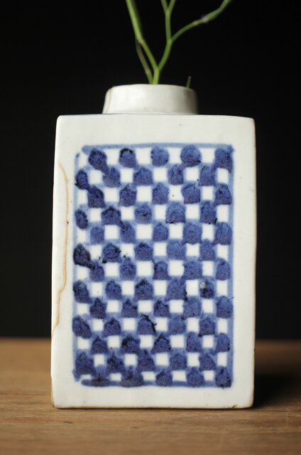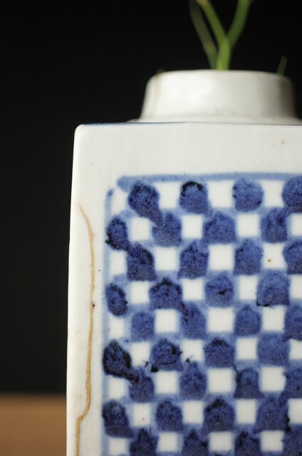 染付市松 青花小花瓶 茶入 P330