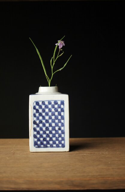 可愛らしい市松模様の小花瓶