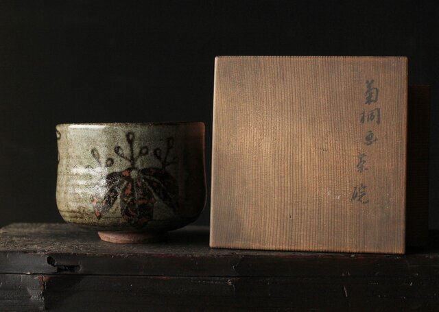 清水六兵衛 菊桐紋 絵唐津茶碗 藪内節庵敷箱  P368