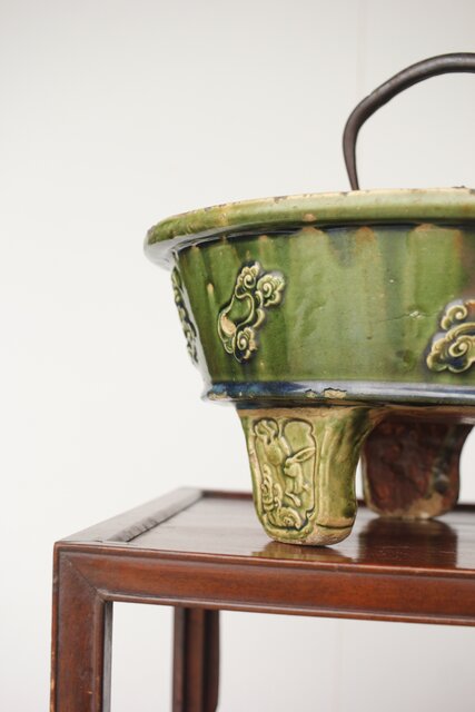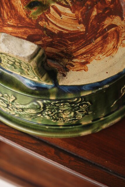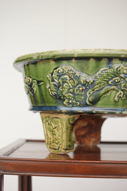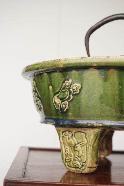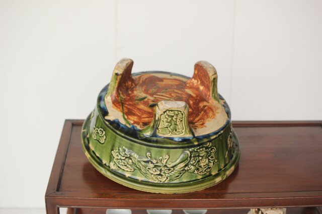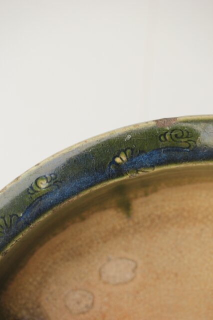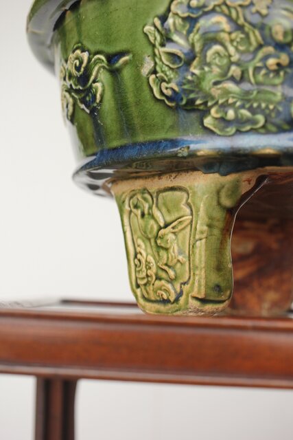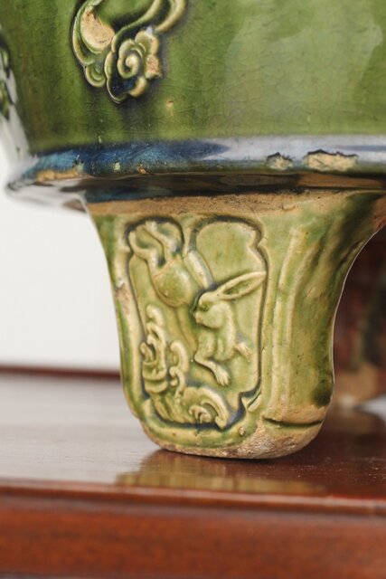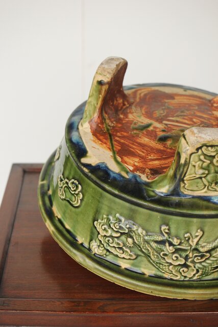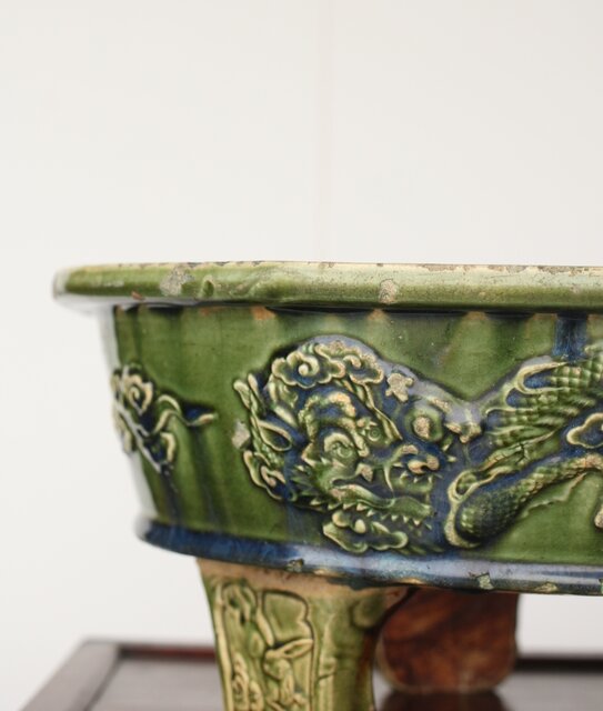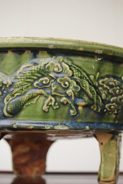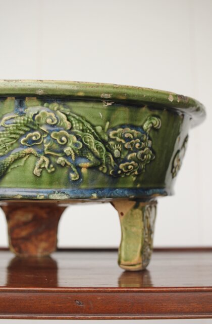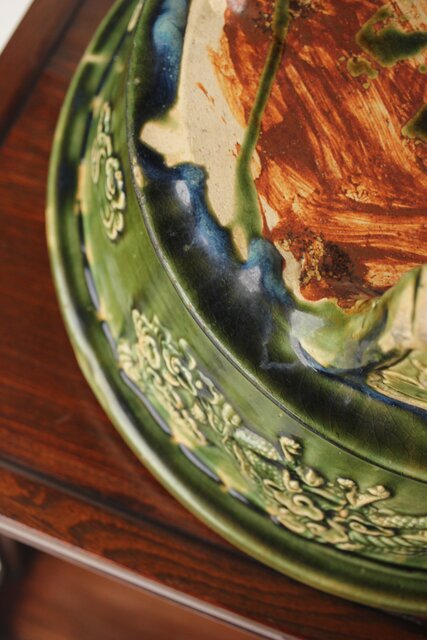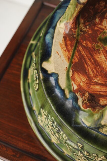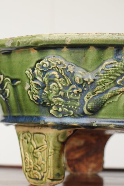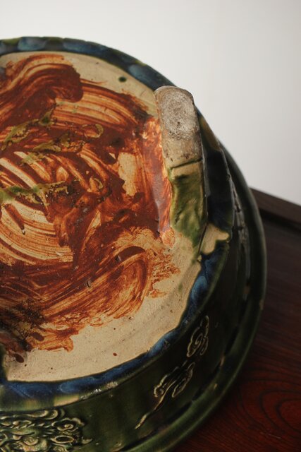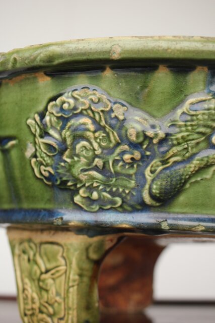 ルス織部 龍兎紋 水盤/瓶掛 P388 各所にホツあり