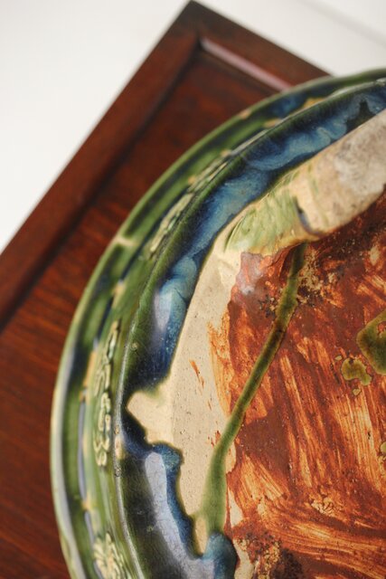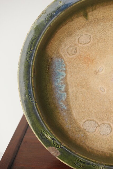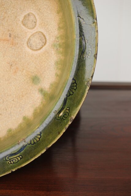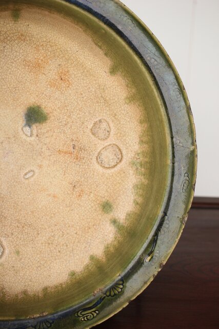 織部風の緑釉が魅力的な貼付紋の盤