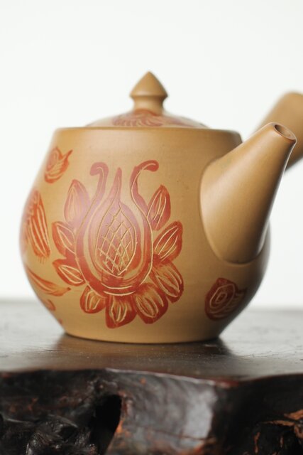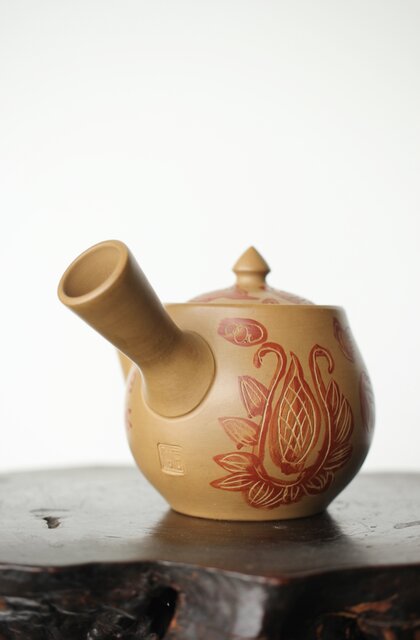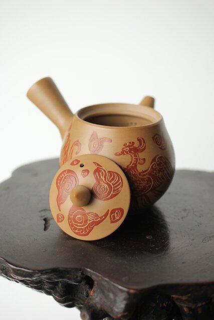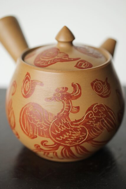 常滑 清水石仙 白泥急須 鳳凰図彫 P360
