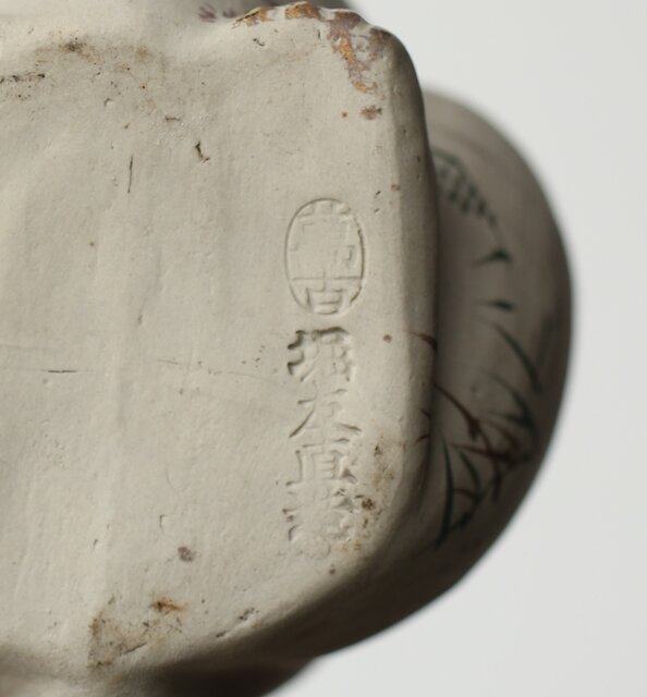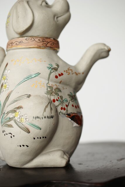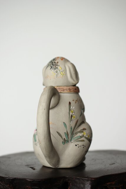 明治萬古 堀友直造 白泥色絵犬型 急須 P364