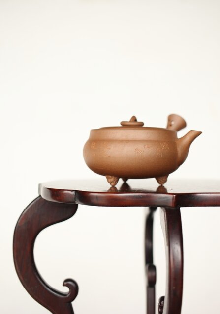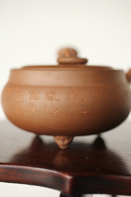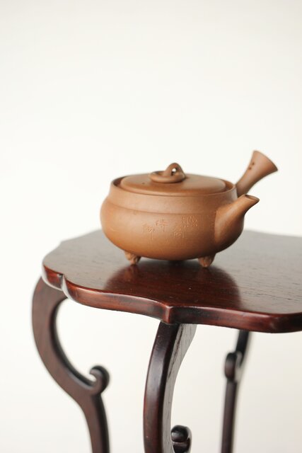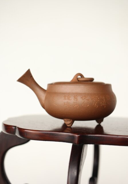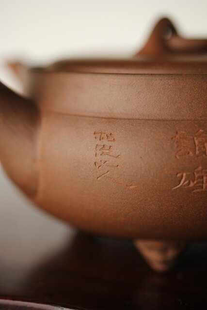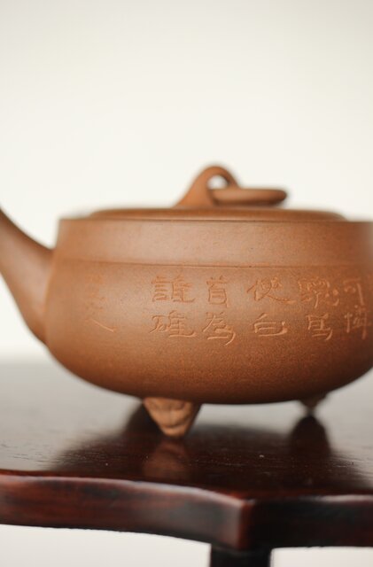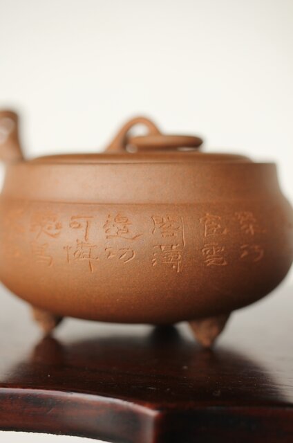 温故焼 漢詩彫 清水温故作 三足急須 P401