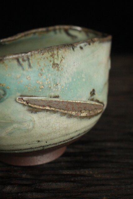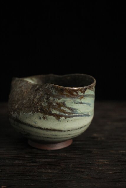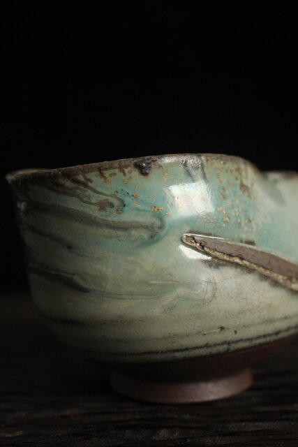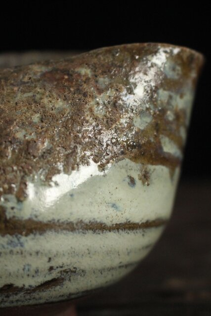焼成中に倒れてしまったのか 釉薬の不自然な流れやひっつきが見られ 景色となっています