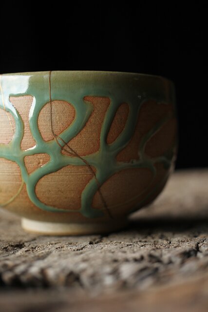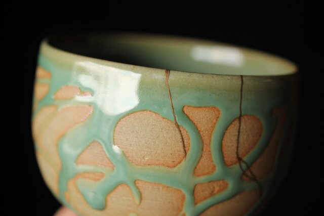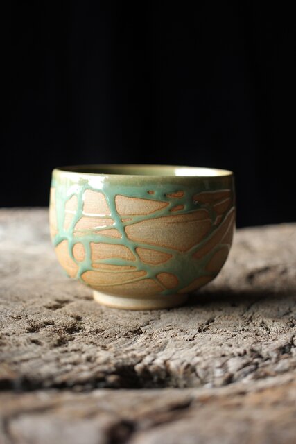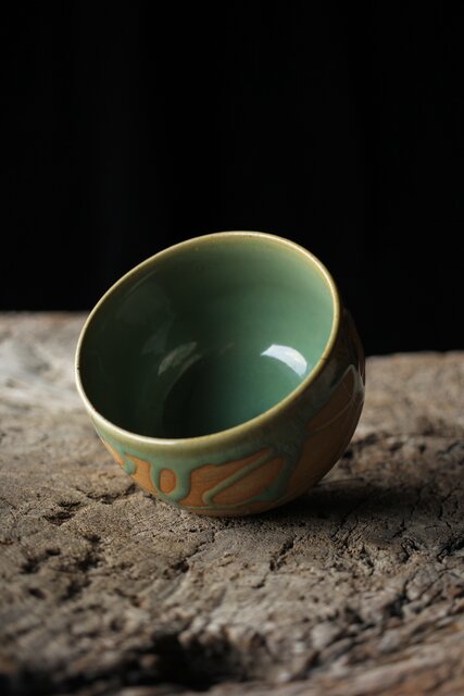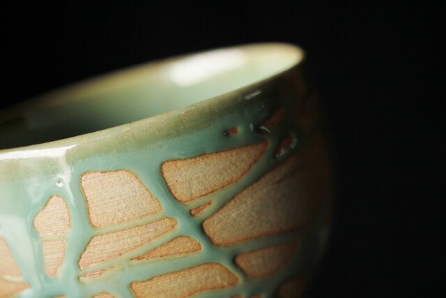 小杉焼 流描青磁茶碗 P433