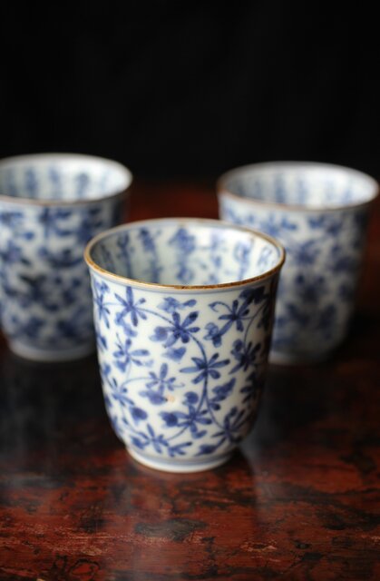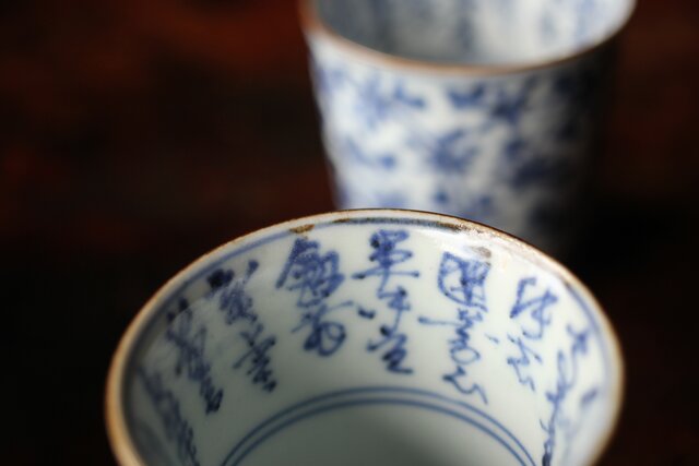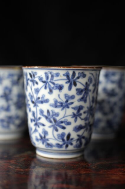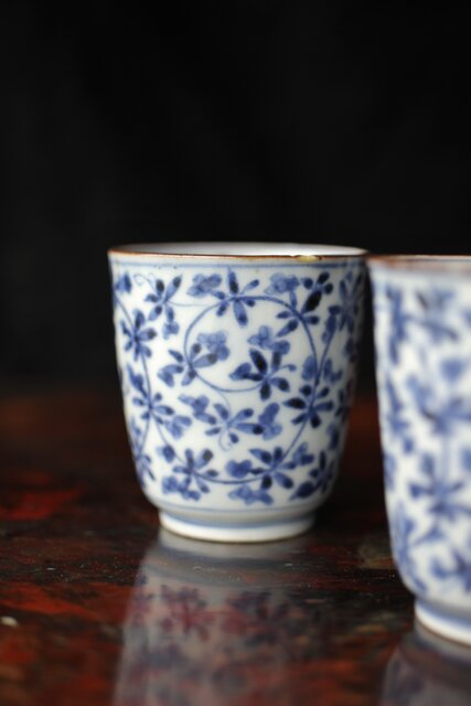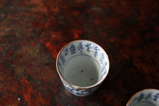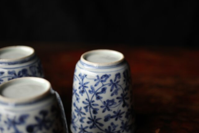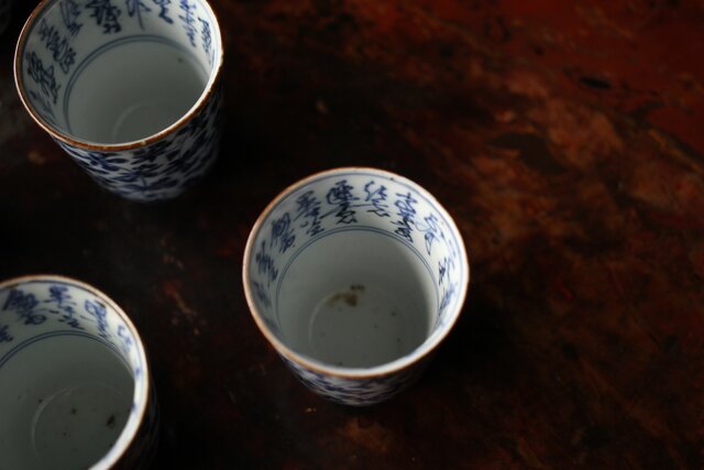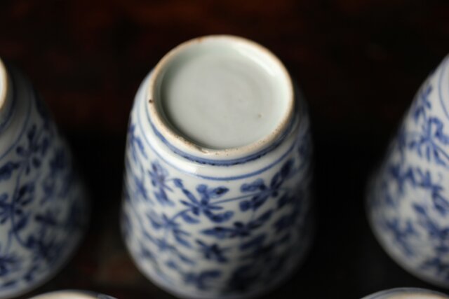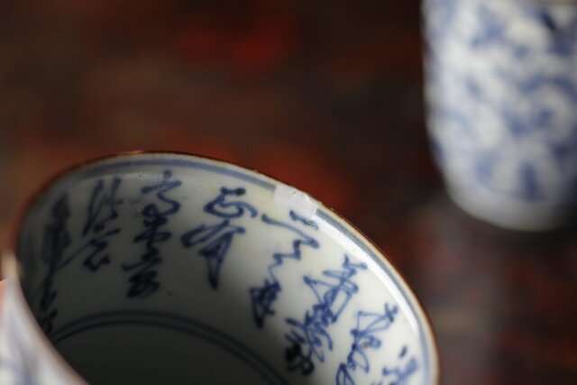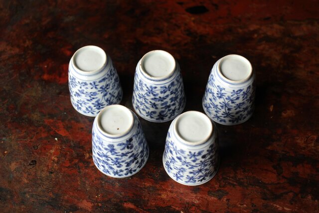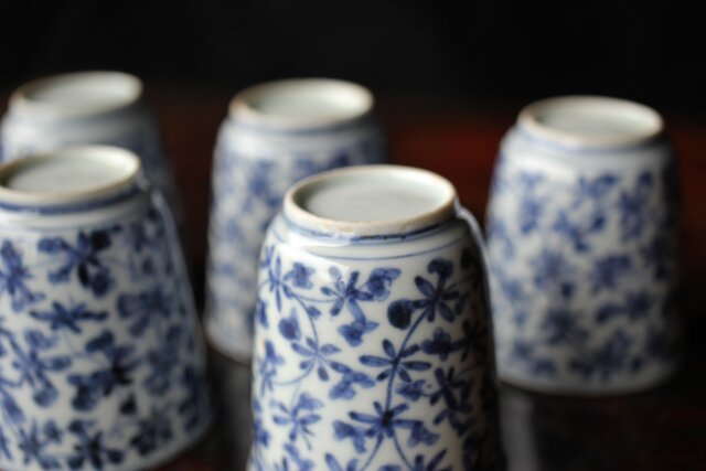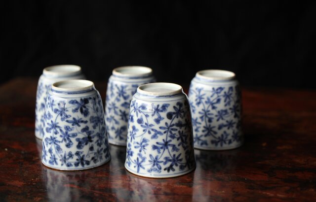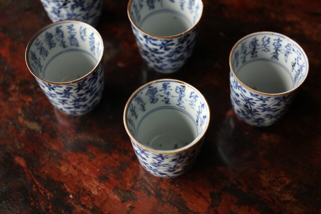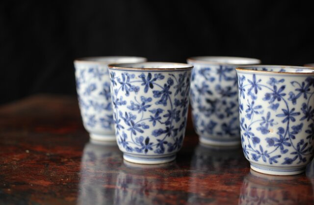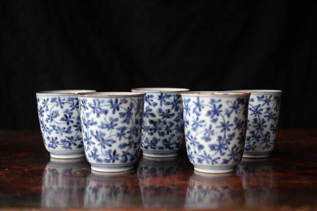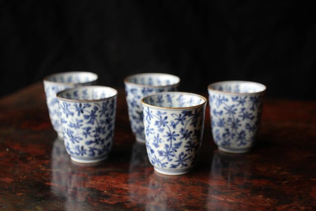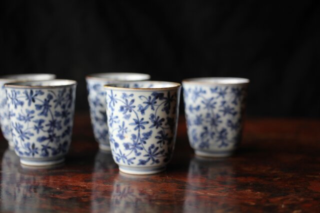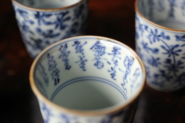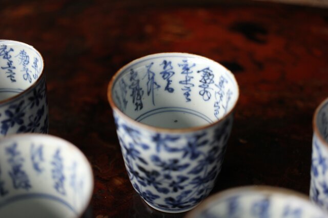古伊万里 唐草漢詩 煎茶碗 5客1組 P444