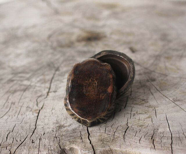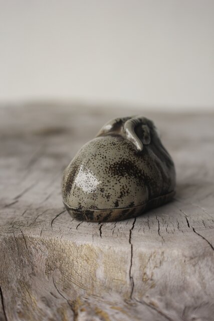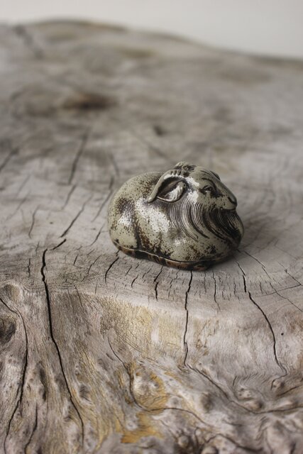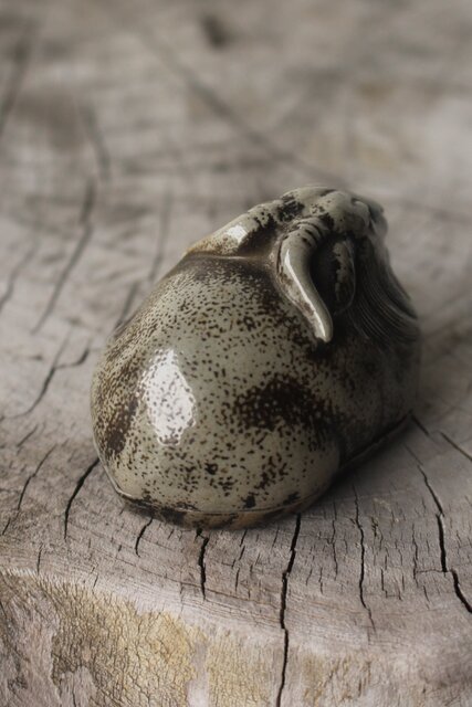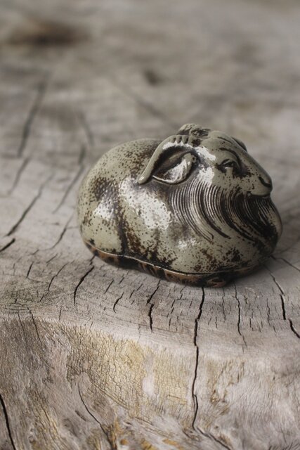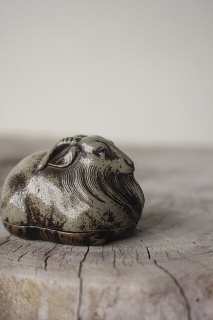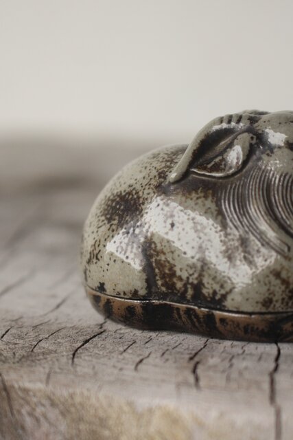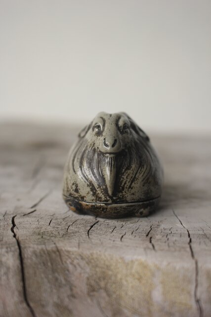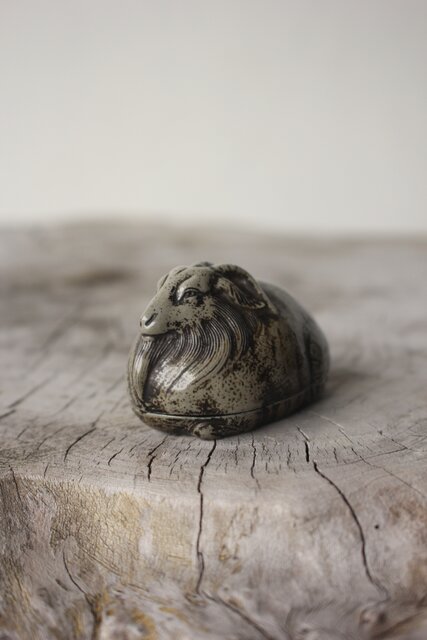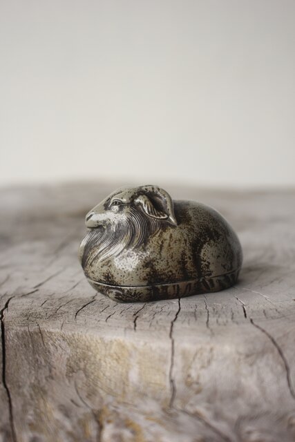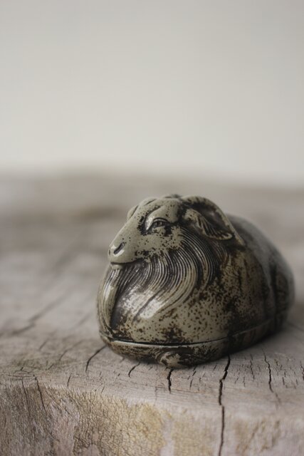 西村春湖 青備前 山羊 香合 共箱 P616