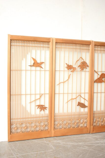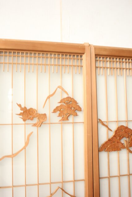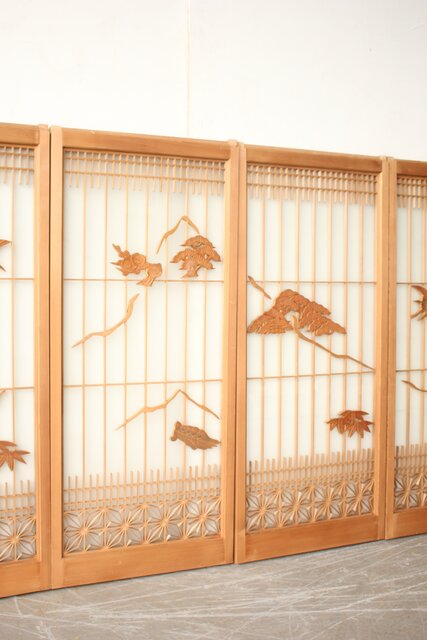 両面ガラス 松竹梅鶴亀吉祥紋 組子書院 4枚1組 R0523