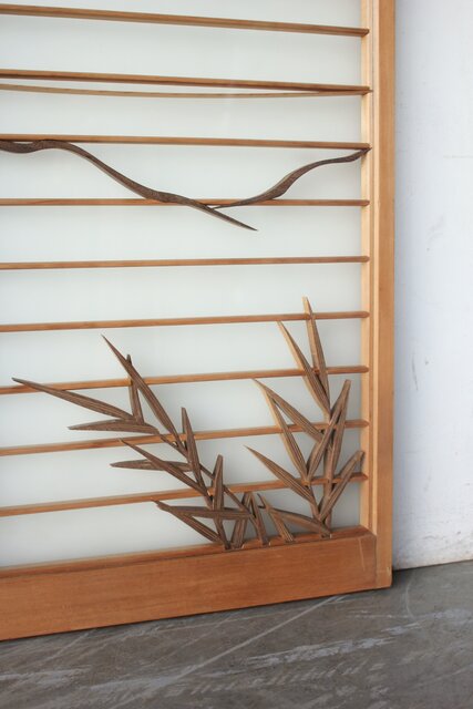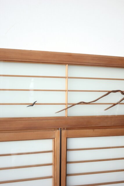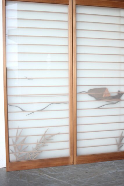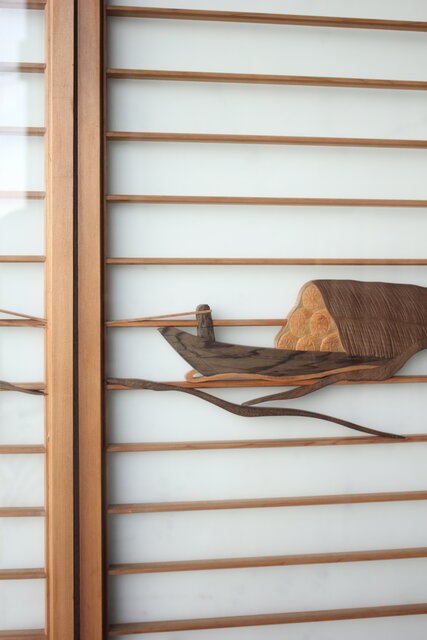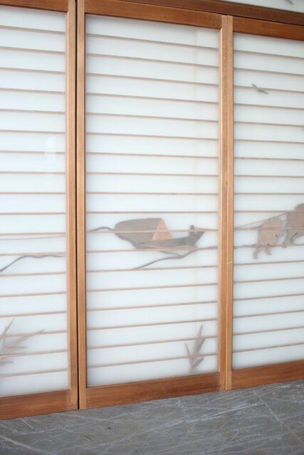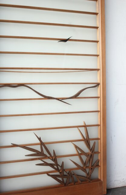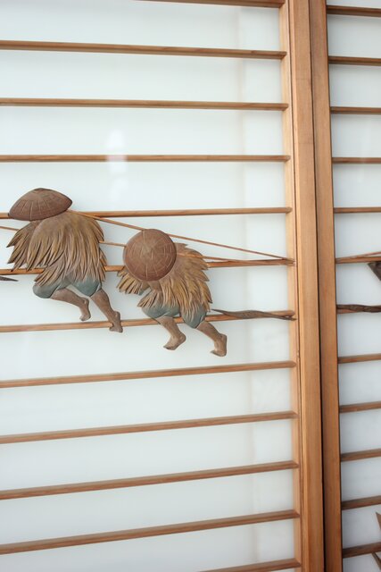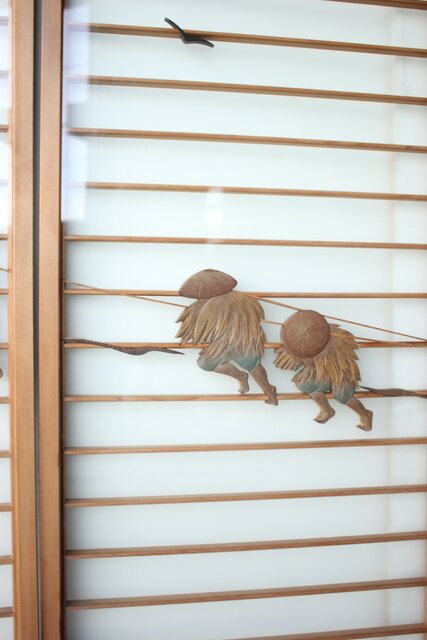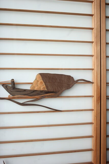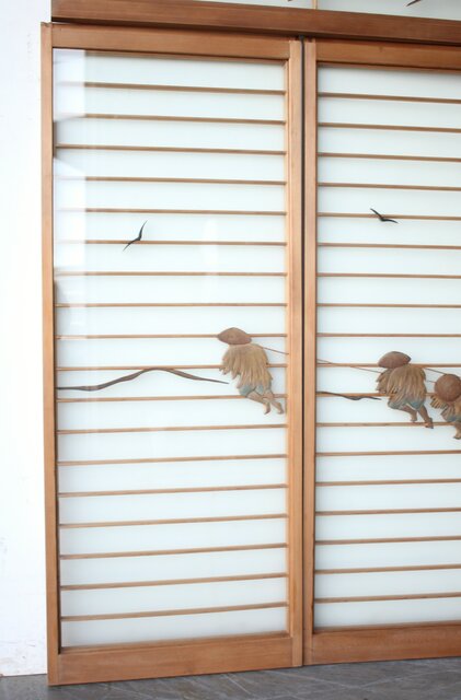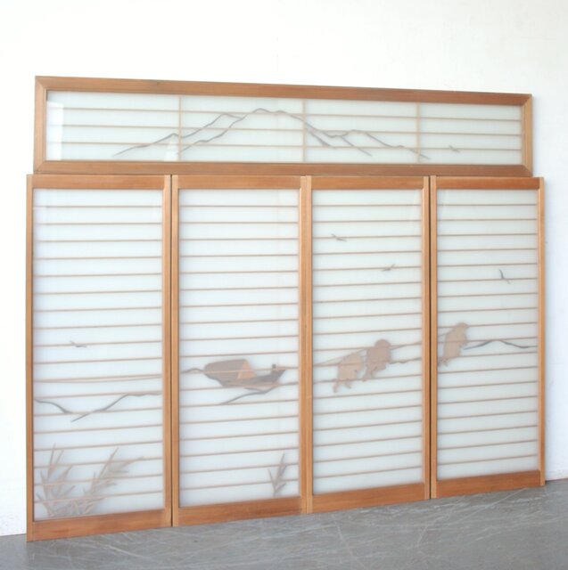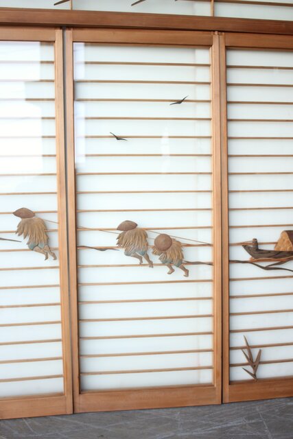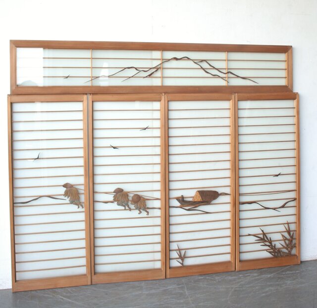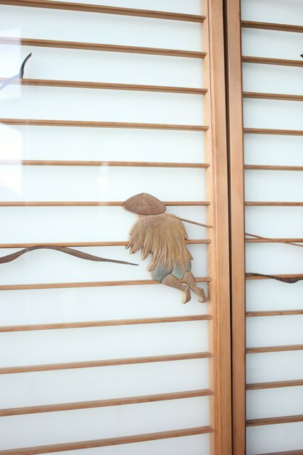 風景画を木彫で描いた書院戸