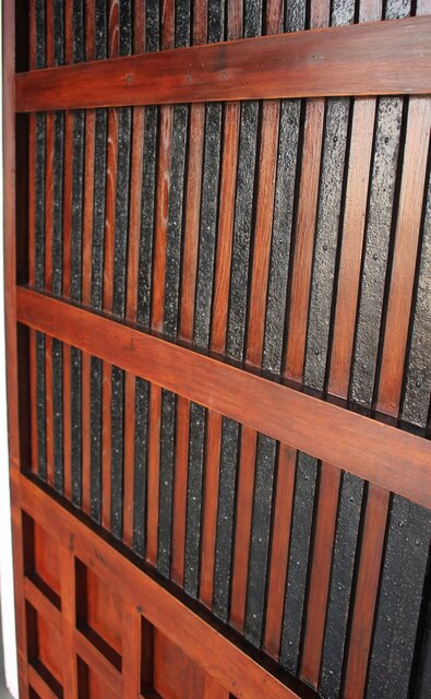 厚めの塗装が施された格子蔵戸