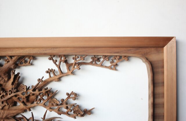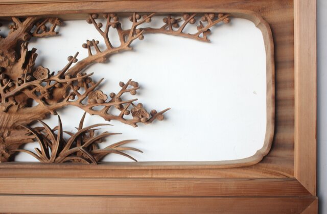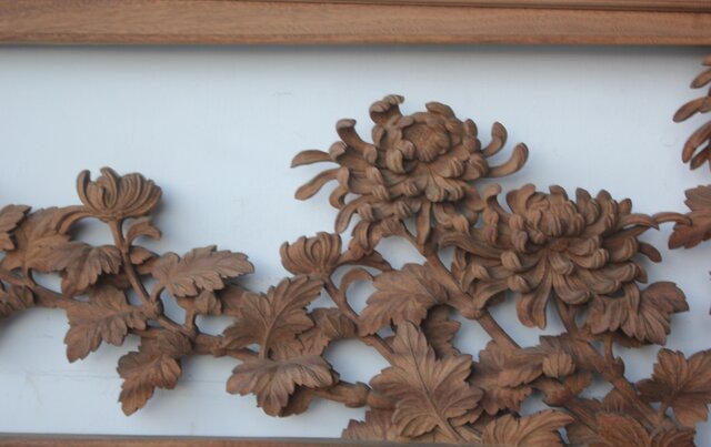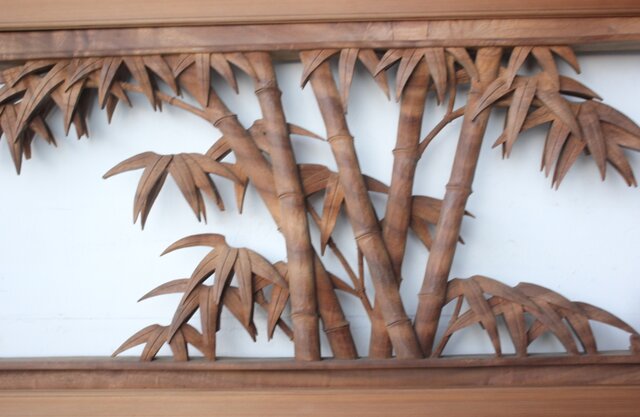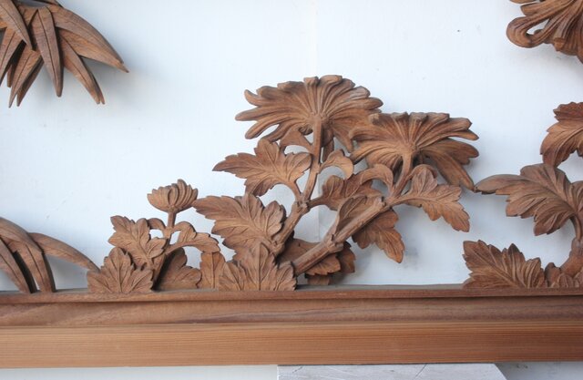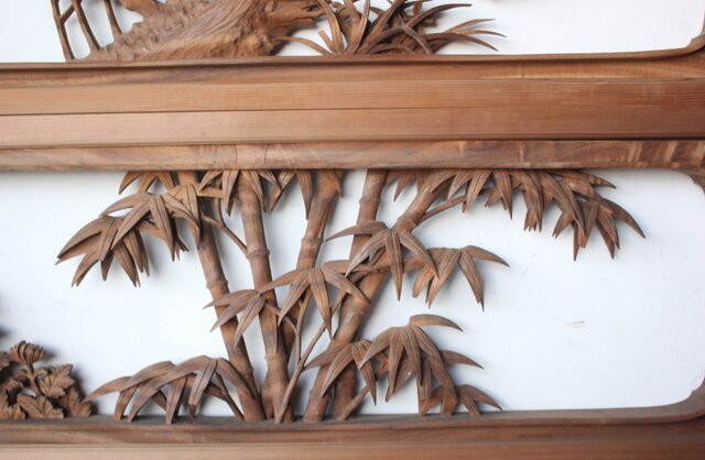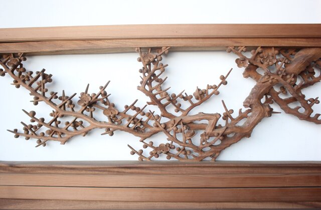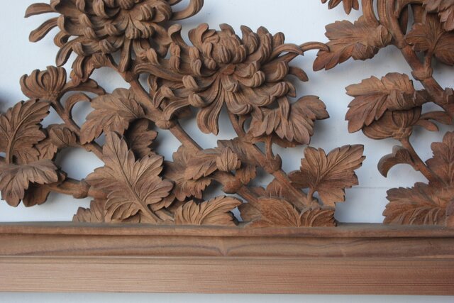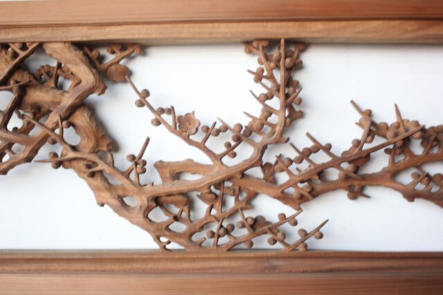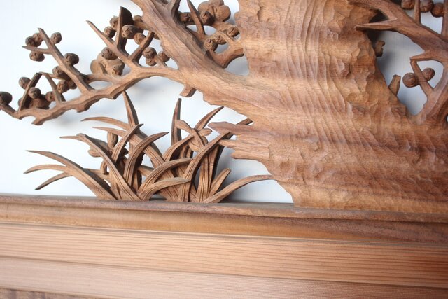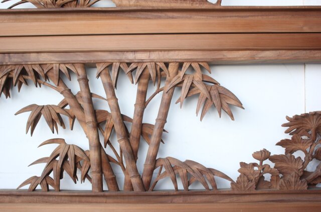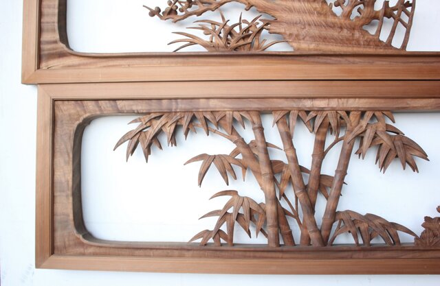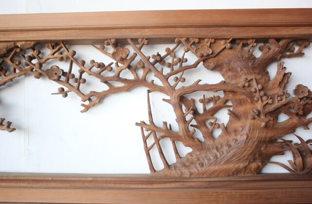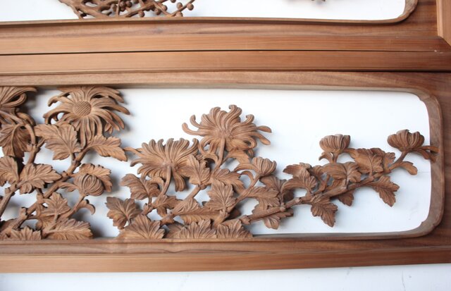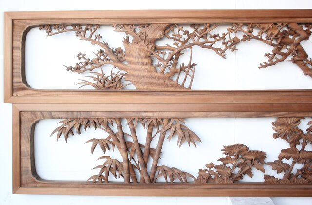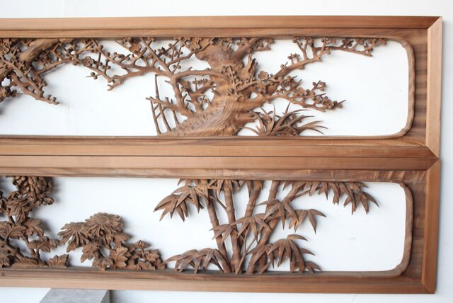 大島五雲 井波彫刻 四君子木彫欄間 2枚1組 R0535