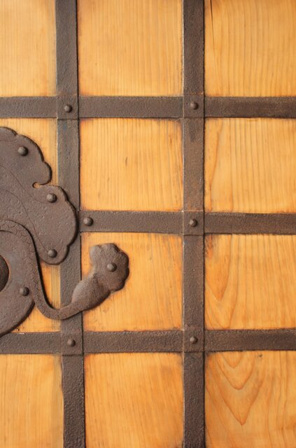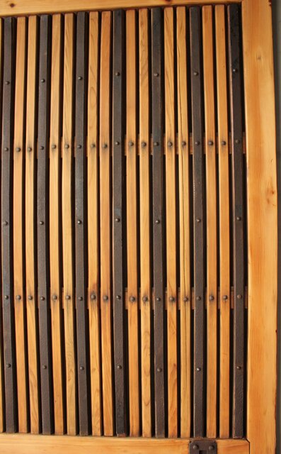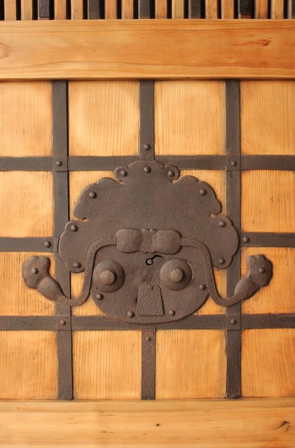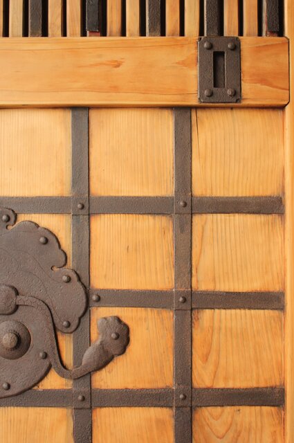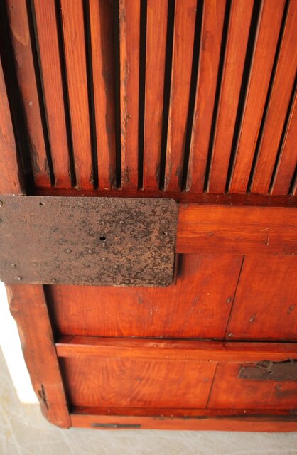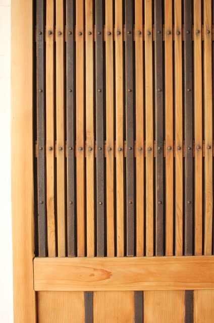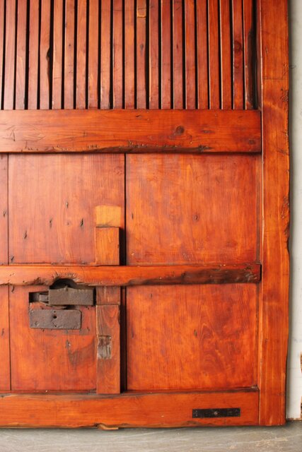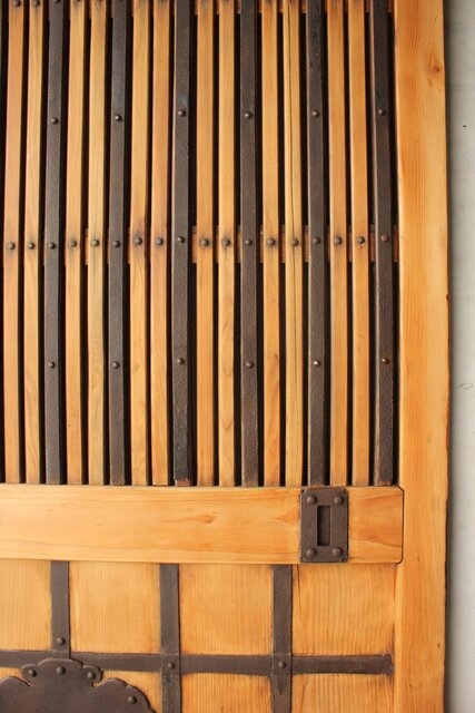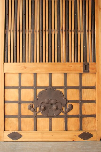 格子や腰板に鉄格子を当てた蔵戸