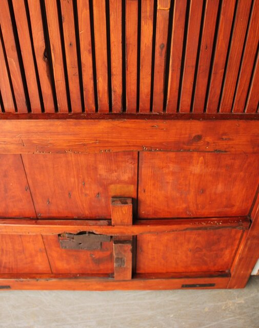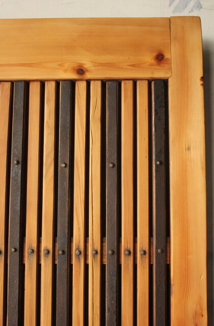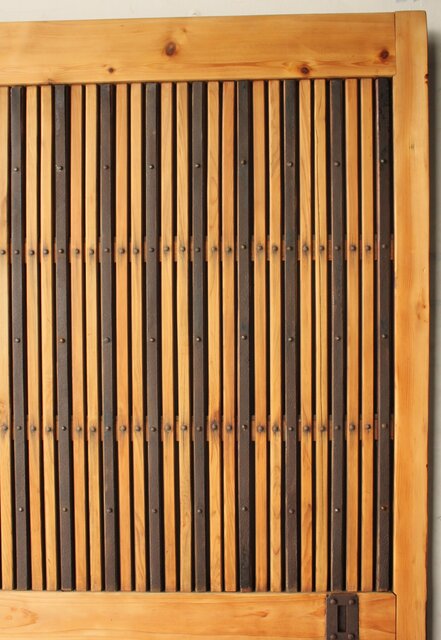 巾着金具格子蔵戸 W0242 反りがあります 片側の框は色が残っています
