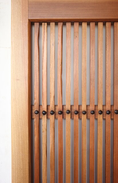 すっきりとした白木の格子蔵戸